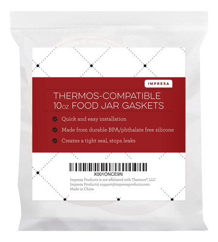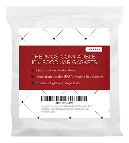 Instruções de instalação: 1.) Usando um implemento longo e fino (como uma chave de fenda fina ou uma lixa de pregos), retire a junta antiga da área de retenção (ela deve se soltar facilmente, mas pode precisar ser trabalhada) .2.) Estique levemente a nova gaxeta.3.) Coloque a nova junta na parte superior da área de fixação e coloque-a no lugar em movimentos circulares. Tudo pronto! Substituições perfeitas. Juntas, anéis de vedação e vedações de reposição perfeitos para recipientes de 10 onças/onças, recipientes para jarras de alimentos de aço inoxidável isolados a vácuo. Não serve para recipientes de 12, 16 ou 24 onças. Substitua suas juntas perdidas ou soltas. As juntas se perdem periodicamente e ficam deformadas/desgastadas com o tempo. Uma junta danificada (ou nenhuma junta) significa uma vedação ruim, causando um vazamento na garrafa. Tenha sempre uma peça de reposição à mão! Feitas de silicone de alta qualidade e seguro para alimentos Nossas juntas são feitas de silicone de alta qualidade, durável e seguro para alimentos e são livres de BPA, sem ftalatos e sem látex. Economize dinheiro, fácil de instalar As juntas de reposição para essas tampas geralmente são difíceis ou caras de encontrar – não compre uma tampa nova, basta comprar um novo conjunto de juntas para durar 3 vezes mais. Fácil instalação em 3 etapas. 3 juntas por pacote. Atenção: Este é um produto genérico fabricado e distribuído pela ImpresaProducts. Este não é um produto OEM da Thermos e a Impresa Products não tem afiliação ou endosso da Thermos. Nosso produto não está coberto por nenhuma garantia do fabricante de garrafas térmicas. As marcas e logotipos da Thermos são marcas registradas de seus proprietários. Qualquer uso da marca, modelo ou qualquer outra designação relacionada da Thermos é feito exclusivamente para descrever e ilustrar a compatibilidade.