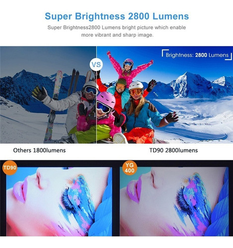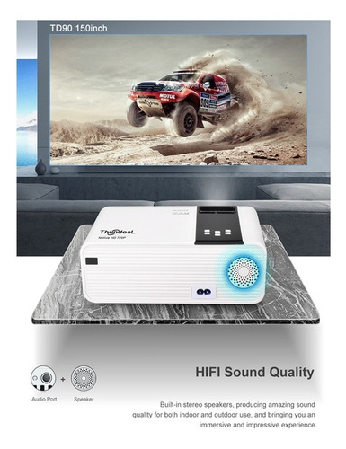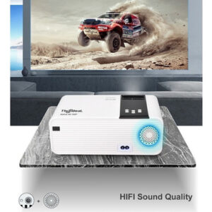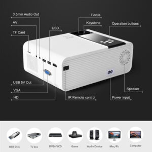 [Excelente desempenho] O mais recente projetor de filmes HD em miniatura em 2021, com parâmetros poderosos: entrada Full HD 1080P, suporte para cores reais de 24 bits, processo de revestimento de vidro puro com lentes de alto brilho. Qualidade de som do subwoofer do alto-falante do gabinete integrado.