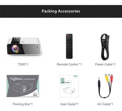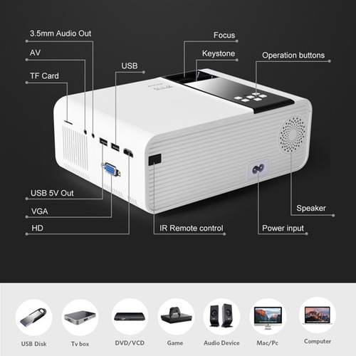 [Ampla interface e suporte de serviço] Equipado com portas de entrada HDMI/AV/VGA/USB/TF, compatível com Roku Stick, Fire-TV, Chromecast, alto-falantes externos, disco U, PS4/XBOX, laptop/PC, player DVD Movie Projector , telemóvel/iPad.