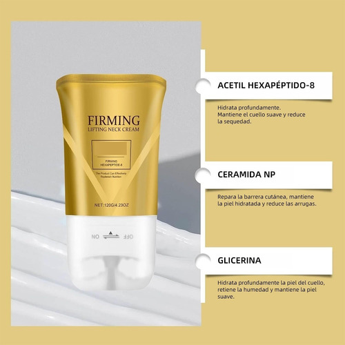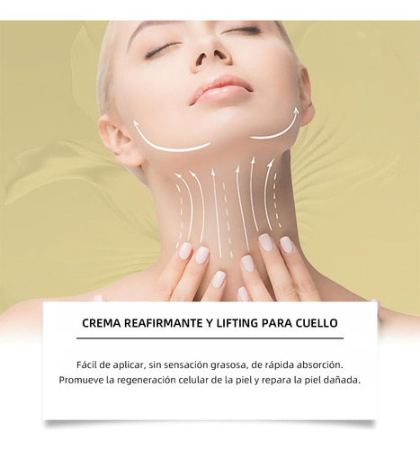 Reduza as linhas do pescoço e restaure um pescoço de cisne jovem Abundante em peptídeos, ácido hialurônico, etc., penetra profundamente na derme, alivia eficazmente as linhas do pescoço, melhora a suavidade da pele do pescoço e restaura um perfil firme e jovem do pescoço.