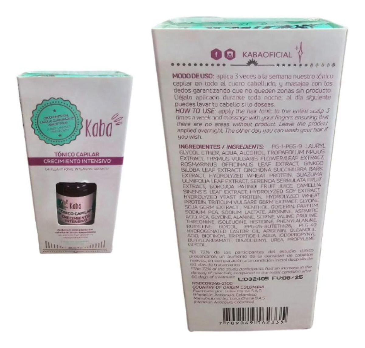Tônico intensivo para crescimento capilar – sem minoxidil. Produto original importado da Colômbia. Verifique se sua compra foi feita por meio do vendedor: St.Evenst Int. para oferecer um melhor serviço, garantia e suporte à marca. NÃO ACEITE IMITAÇÕES. Tônico intensivo para crescimento capilar – Sérum capilar para crescimento capilar – Sérum para crescimento capilar feminino – Óleo natural vegano para crescimento capilar. – Feito de extratos naturais e aminoácidos essenciais: estimulante natural impregnado com uma poderosa mistura de vários aminoácidos e peptídeos que ajudam a estimular o crescimento e a espessura do cabelo. Verifique se sua compra foi feita por meio do revendedor autorizado: St. Evenst Int. para oferecer um melhor serviço, garantia e suporte à marca. Produto original importado da COLÔMBIA. – Ingredientes básicos limpos e clinicamente comprovados: com propriedades de alongamento e espessamento do cabelo. Sem minoxidil. – Ingredientes estimulantes do crescimento capilar: como alecrim, extrato de flor de tomilho, extrato de ginkgo biloba, extrato de camélia que têm propriedades desinfladoras e são poderosos ativadores da irrigação capilar e, graças a isso, ajudam a fortalecer o cabelo, torná-lo mais saudável e promover o crescimento. O óleo de rícino rico em ômega 9, vitamina E e ácidos graxos tem propriedades antiinflamatórias e antibacterianas. – Ajuda a fortalecer os folículos pilosos: os folículos recebem nutrientes e oxigênio ideais para o desenvolvimento e crescimento de novos cabelos, ajuda a controlar a produção excessiva de óleo, combater a caspa e aumentar o crescimento do cabelo. Além disso, o cabelo ficará mais nutrido, sedoso e vivo. – Com extrato de Serenoa que não só ajuda a regular a oleosidade, mas também tem propriedades para hidratar e fortalecer os cabelos. Este composto natural é o mais procurado para combater a alopecia androgênica.