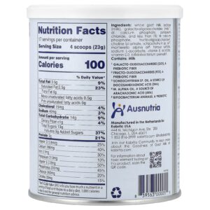 Leite de cabra integral, lactose (leite), galacto-oligossacarídeos (leite)¹, fosfato de cálcio dibásico, cloreto de potássio, e menos de 1%: tri calcium phosphate, fruto-oligossacarídeos², hemitartarato de colina, schizochytrium sp. óleo³, óleo de Mortierella alpina4, sulfato ferroso, L-ascorbato de sódio, acetato de vitamina E, vitamina D3, bifidobacterium animalis5.