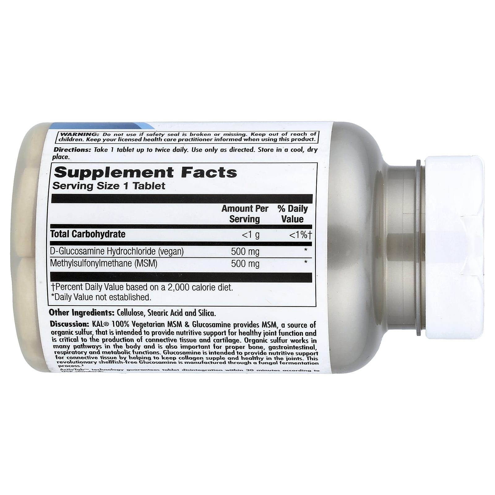 KAL 100% Vegetariano MSM e Glucosamina 60 Comprimidos – KAL Suplementos Ossos, Articulações e Cartilagem Fórmulas de Glucosamina.