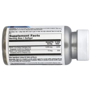 Análise: A Vitamina D se destina a fornecer suporte nutritivo para o crescimento esquelético normal e saudável, bem como para o metabolismo saudável do cálcio e do fósforo. A Vitamina A se destina a fornecer suporte nutritivo para pele, ossos e dentes normais e saudáveis.