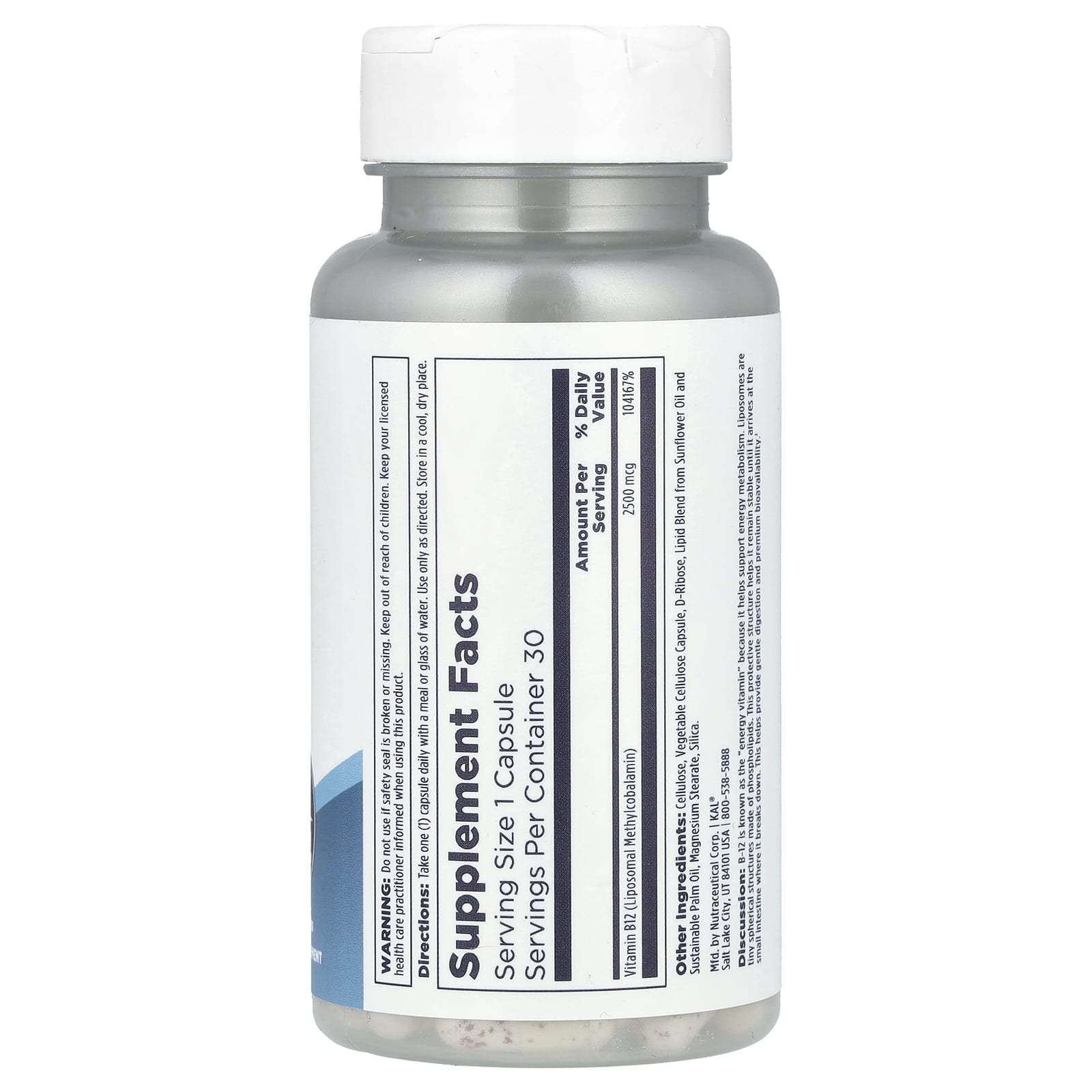 KAL B-12 Lipossomal Alta Potência 2.500 mcg 30 VegCaps – KAL Suplementos Vitaminas Vitamina B Vitamina B12 (Cobalamina).