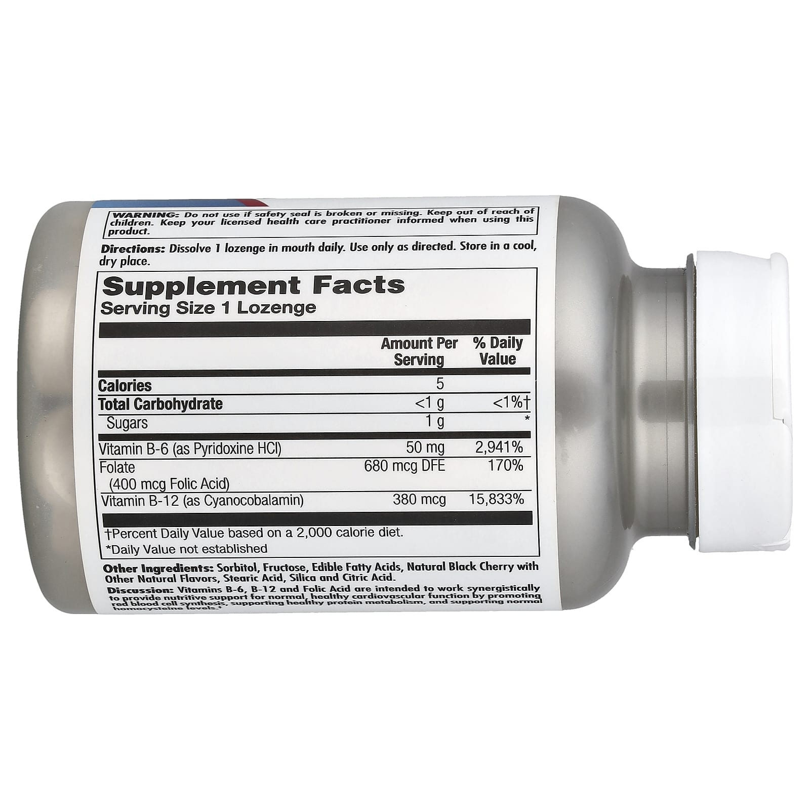 KAL B-6 B-12 Ácido Fólico Cereja Negra 60 Pastilhas – KAL Suplementos Vitaminas Vitamina B Vitamin B9 (Folate – Folic Acid).