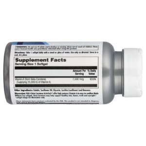 KAL Betacaroteno 7.500 mcg (25.000 UI) 100 Cápsulas Softgel – KAL Suplementos Antioxidantes Beta Caroteno.