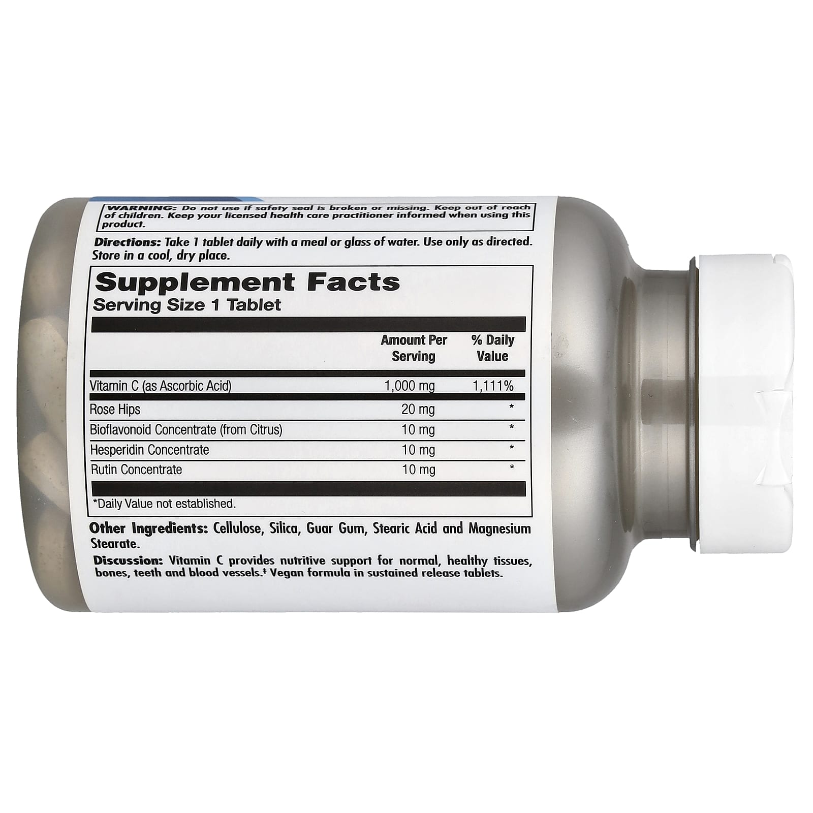 Análise: A Vitamina C fornece suporte nutritivo para tecidos, ossos, dentes e vasos sanguíneos normais e saudáveis. Fórmula vegana em comprimidos de liberação gradual.