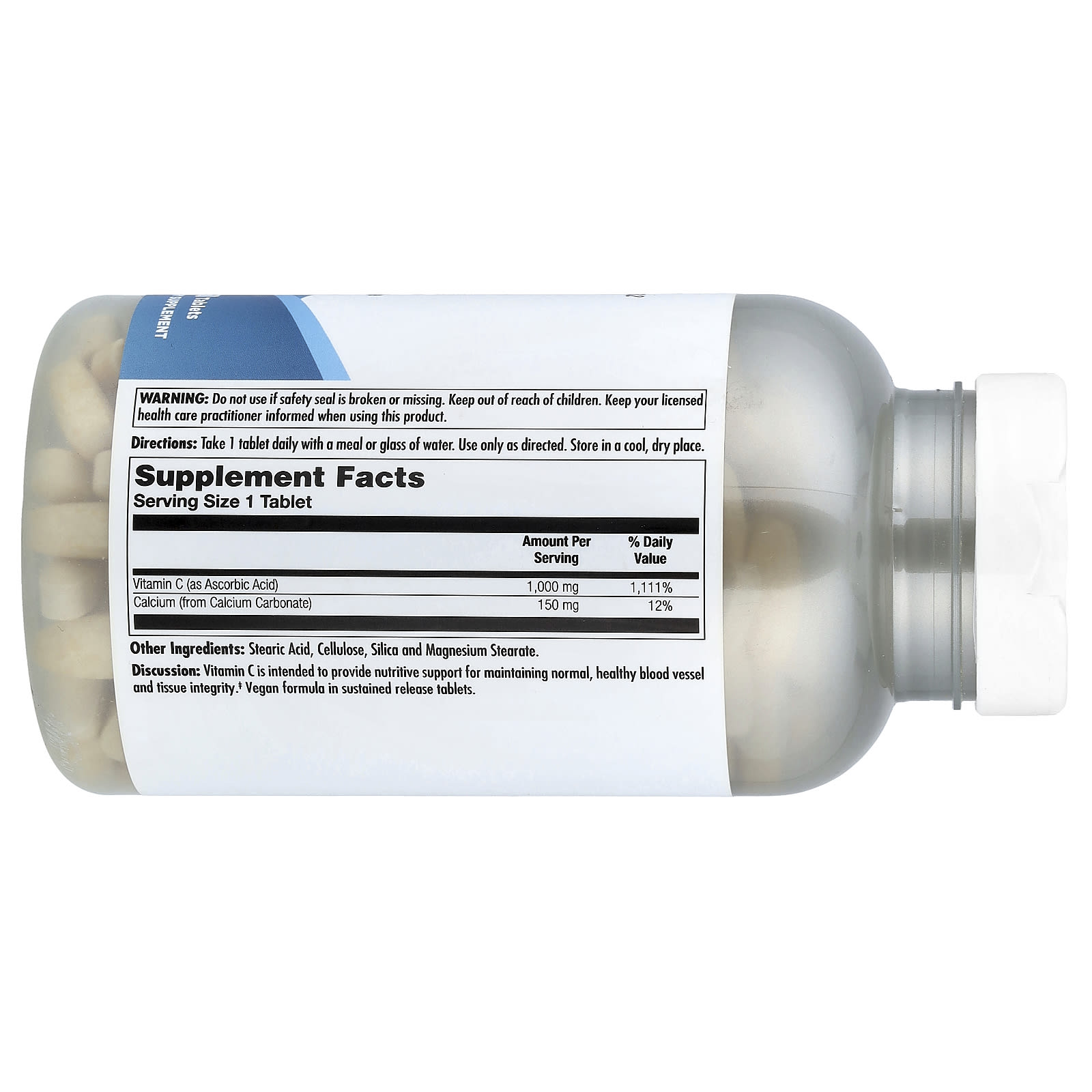 Análise: A Vitamina C se destina a fornecer suporte nutritivo para manter a integridade normal e saudável dos vasos sanguíneos e dos tecidos. Fórmula vegana em comprimidos de liberação gradual.