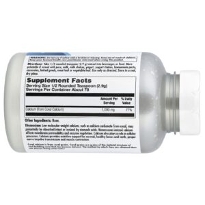 Análise: O cálcio de baixo peso molecular, como o carbonato de cálcio de coral, pode ser absorvido intacto ou ionizado pelos ácidos estomacais. O cálcio ionizado não ósseo afeta a membrana e a regulação enzimática. O cálcio também desempenha uma função nos processos celulares. O Cálcio fornece suporte nutritivo para ossos e dentes normais e saudáveis, para transmissão adequada do impulso nervoso e para contração muscular adequada.