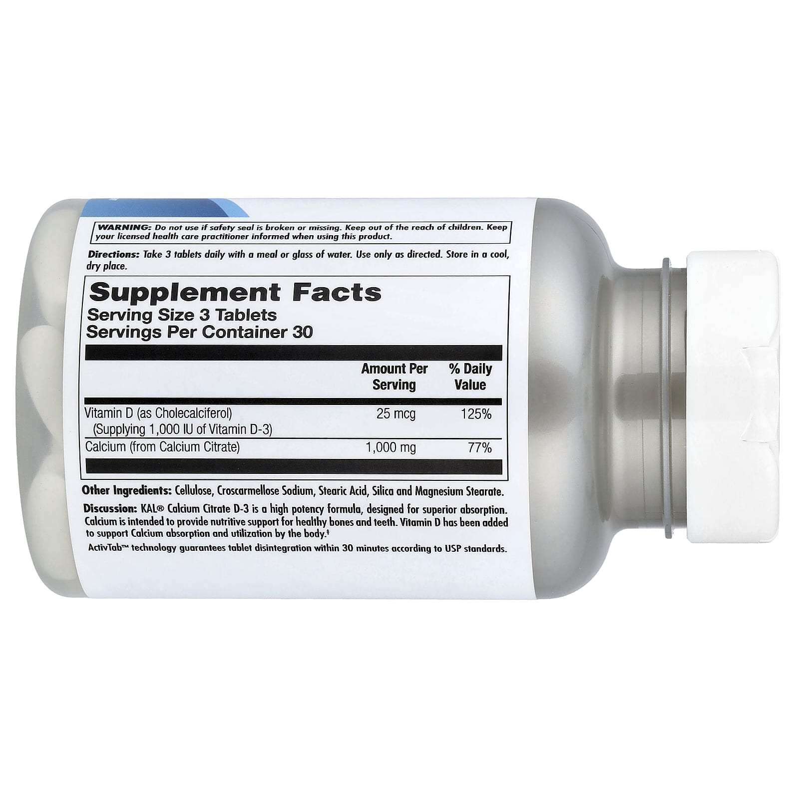 Análise: O Citrato de Cálcio D-3 da KAL® é uma fórmula de alta potência, projetada para proporcionar uma absorção superior. O Cálcio se destina a fornecer suporte nutritivo para ossos e dentes saudáveis. A Vitamina D foi adicionada para auxiliar a absorção e a utilização de Cálcio pelo corpo.