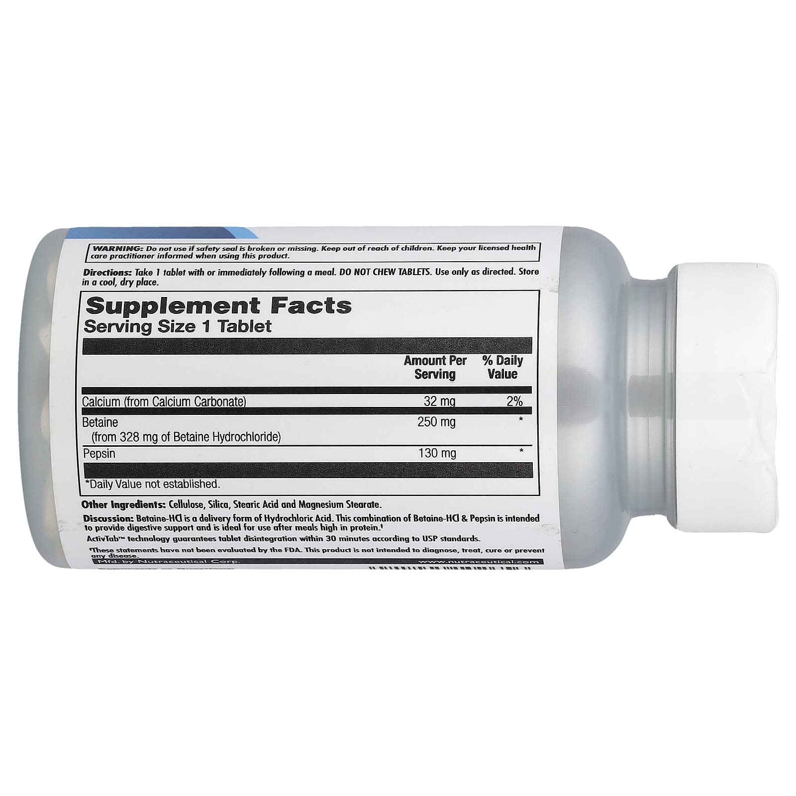 Análise: o Cloridrato de Betaína é uma forma de administração do Ácido Clorídrico. Esta combinação de Cloridrato de Betaína e Pepsina se destina a fornecer auxílio digestivo e é ideal para uso após refeições ricas em proteínas.