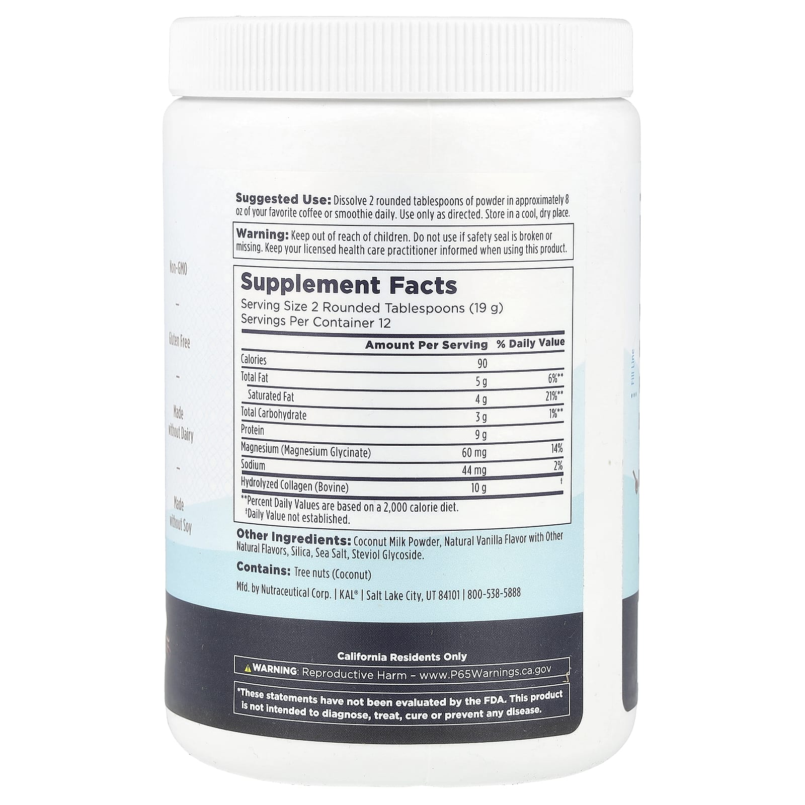 KAL Creme de Colágeno com Glicinato de Magnésio Baunilha 228 g (8 oz) – KAL Alimentos Chás e bebidas Creamers & Beverage Enhancers Suplementos Ossos, Articulações e Cartilagem Colágeno, Suplementos.