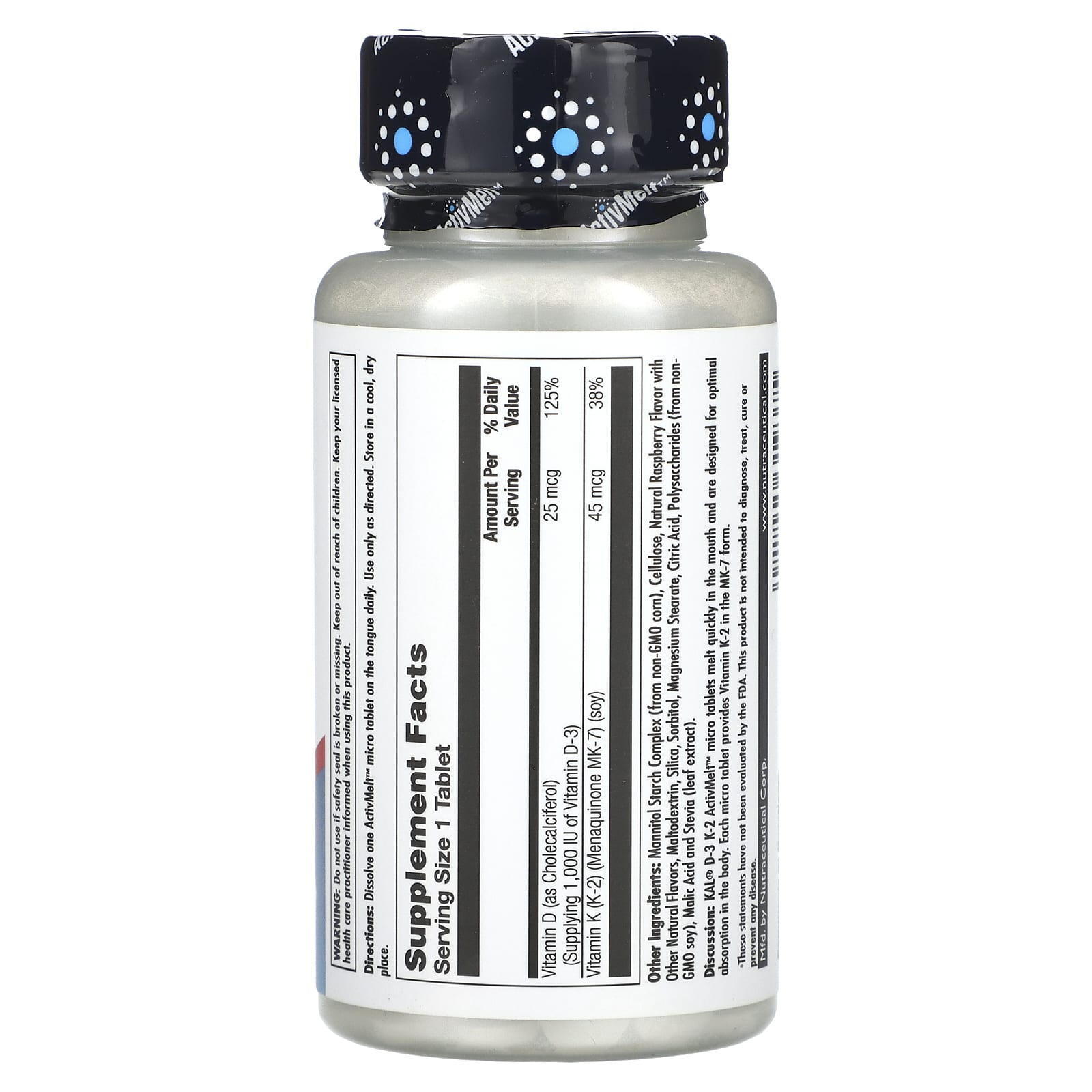 Os microcomprimidos KAL® D-3 K-2 ActivMelt ™ derretem rapidamente na boca e são projetados para absorção ideal no corpo. Cada microcomprimido fornece Vitamina K-2 na forma MK-7.