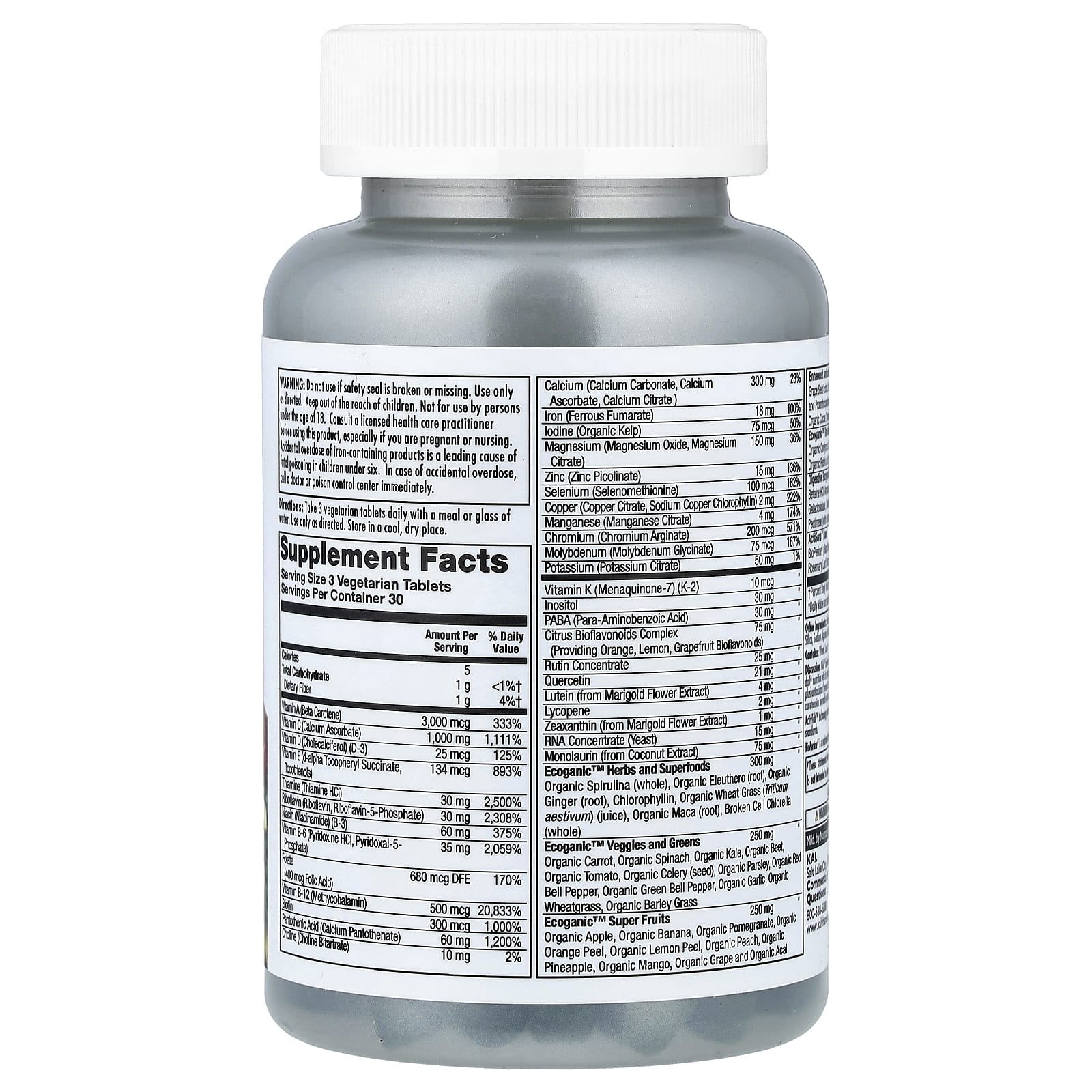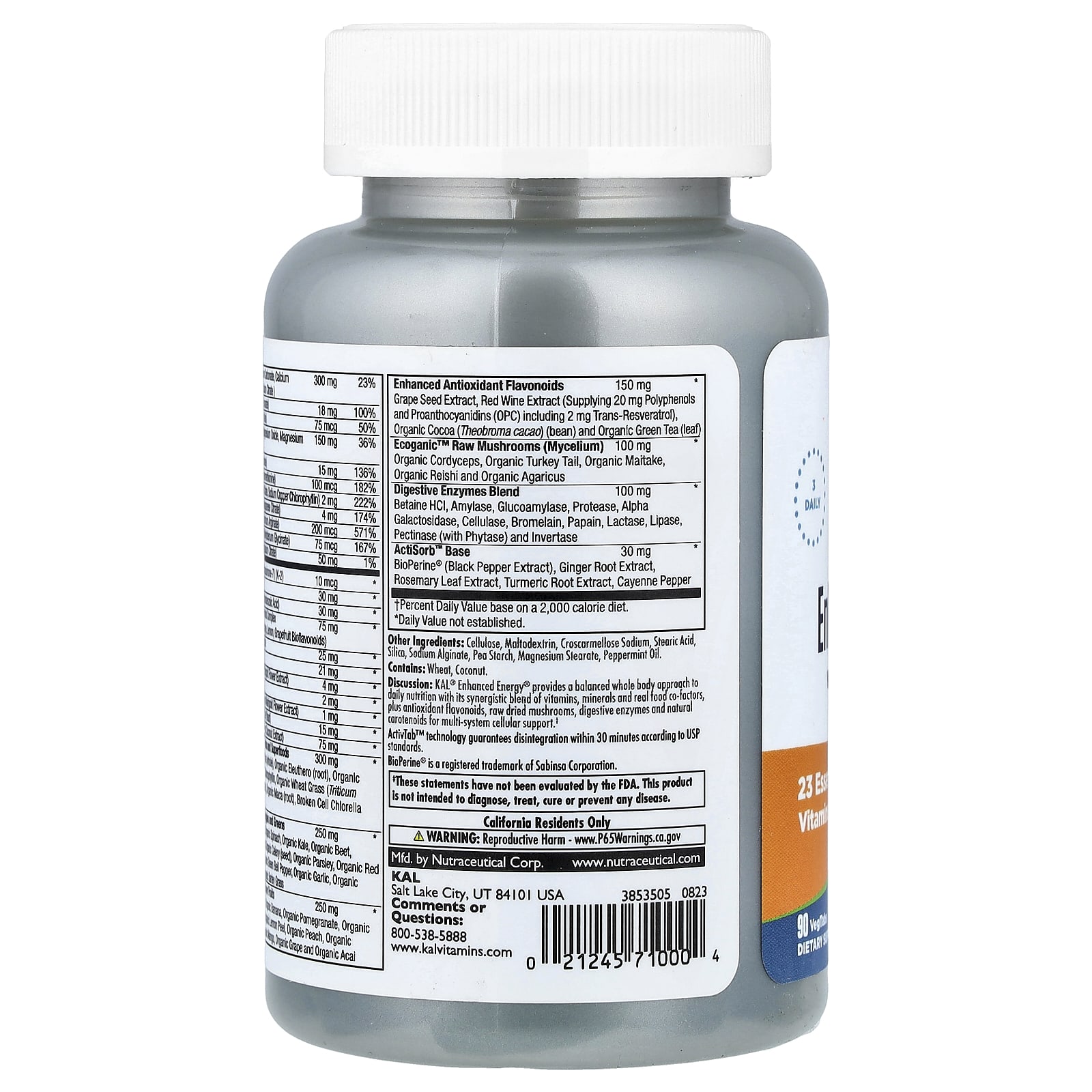 KAL Enhanced Energy® Multivitamínico de Alimentos Integrais 90 VegTabs – KAL Suplementos Vitaminas Multivitamínicos.