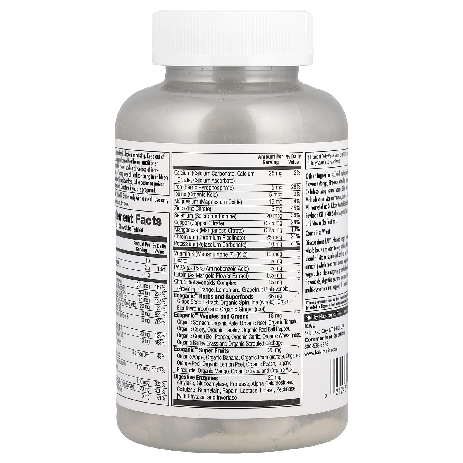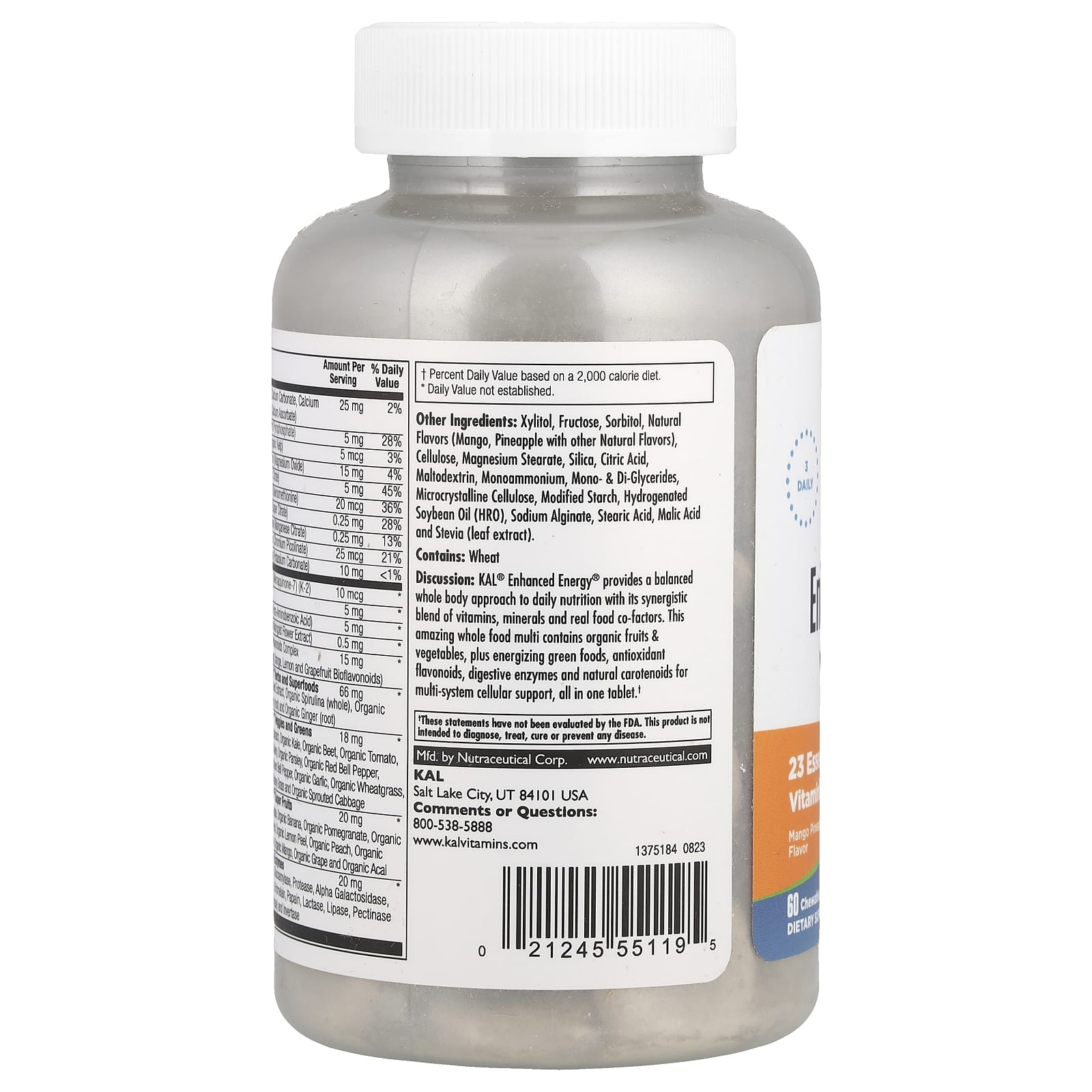 KAL Enhanced Energy Multivitamínico Integral Manga e Abacaxi 60 Cápsulas Mastigáveis – KAL Suplementos Vitaminas Multivitamínicos.