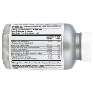 | Cálcio (de Farinha de Ossos, Carbonato de Cálcio) | 500 mg | 38% |