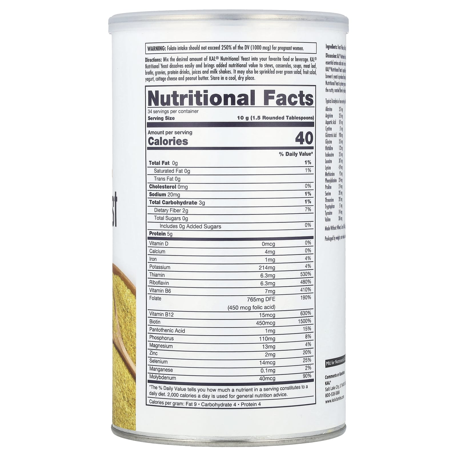 A Levedura Nutricional Importada da KAL é cultivada principalmente em melaço. Esta fonte natural produz flocos de levedura que contêm um espectro completo de aminoácidos essenciais e uma variedade equilibrada de Vitaminas B. Esses flocos vegetarianos premium não contêm açúcar, não são OGM e têm naturalmente baixo teor de gordura e sódio. A Levedura Nutricional da KAL é especialmente fortificada com Vitaminas B para auxílio alimentar adicional. A levedura de cerveja tradicional é produzida através do processo de fermentação e pode deixar um gosto amargo na boca. Como a Levedura Nutricional da KAL é cultivada principalmente em melaço, apenas o sabor naturalmente delicioso transparece. Experimente o sabor torrado de nozes adicionando esses flocos aos seus alimentos favoritos.