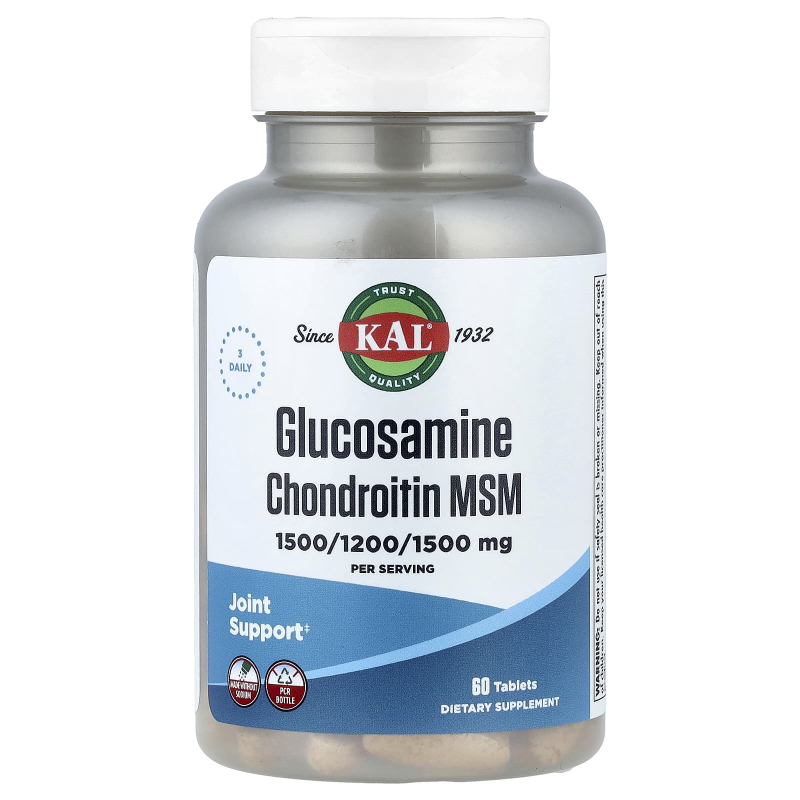 KAL Glicosamina e Condroitina MSM 60 Comprimidos – KAL Suplementos Ossos, Articulações e Cartilagem Fórmulas de Glucosamina.