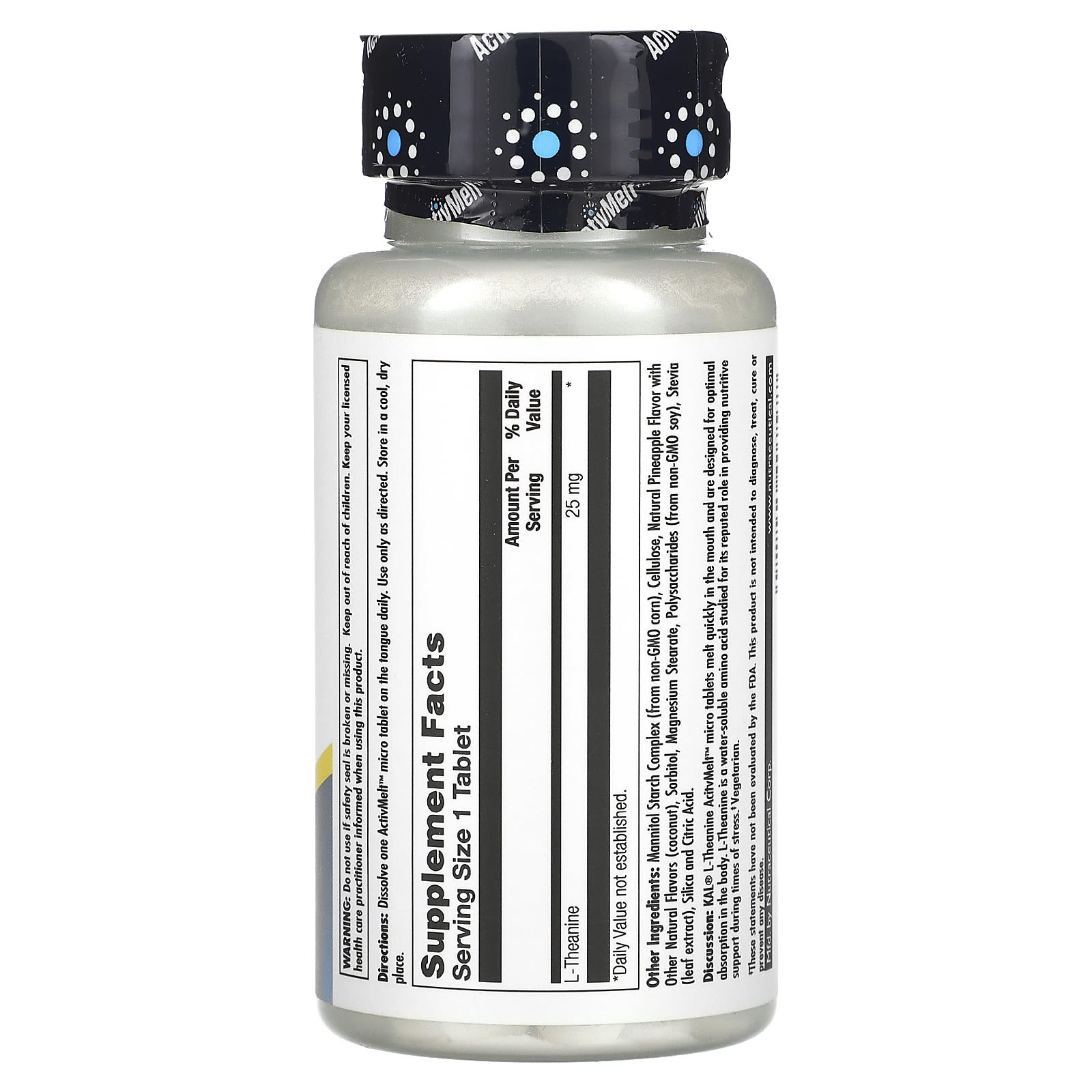 Os microcomprimidos KAL® L-Theanine ActivMelt ™ derretem rapidamente na boca e são projetados para absorção ideal no corpo. A L-teanina é um aminoácido solúvel em água estudado por seu papel reconhecido em fornecer suporte nutritivo durante períodos de estresse.