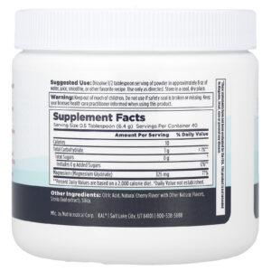 KAL Magnésio Calmante em Pó Cereja 256 g (9 oz) – KAL Suplementos Minerais Magnésio Glicinato de Magnésio.