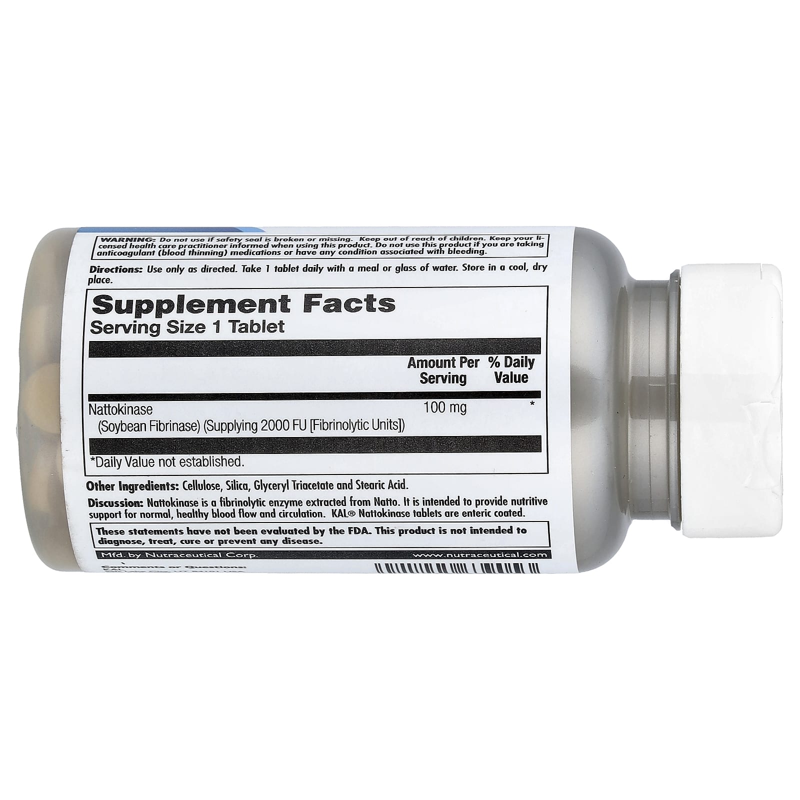 Análise: A nattoquinase é uma enzima fibrinolítica extraída do Natto. Ele destina-se a fornecer um reforço nutritivo para fluxo sanguíneo e circulação normais e saudáveis. Os comprimidos Nattokinase da KAL® têm revestimento entérico.