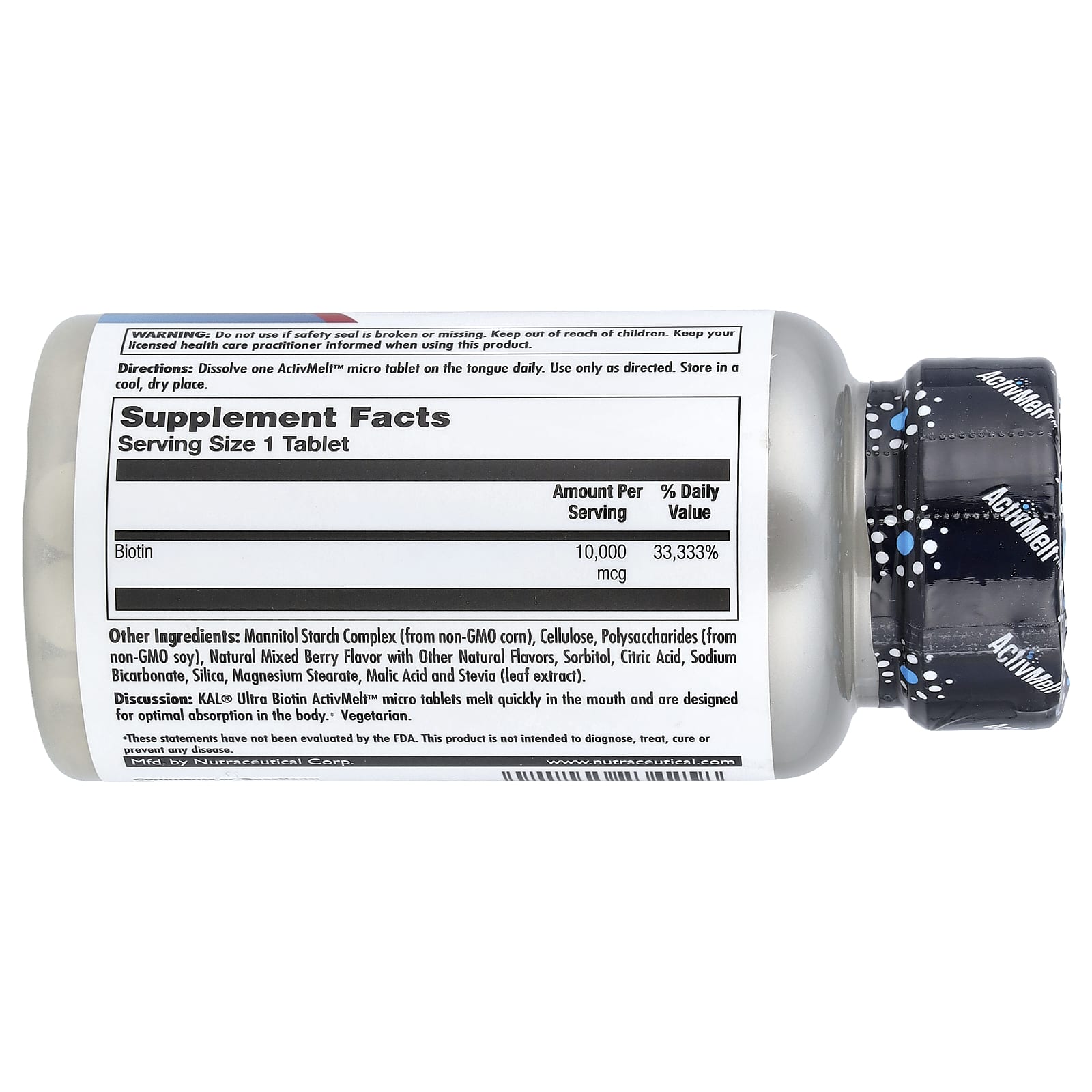 KAL Ultra Biotina ActivMelt Frutos Silvestres 10.000 mcg 60 Microcomprimidos – KAL Suplementos Cabelos, Pele e Unhas Vitamina B7 (Biotina).