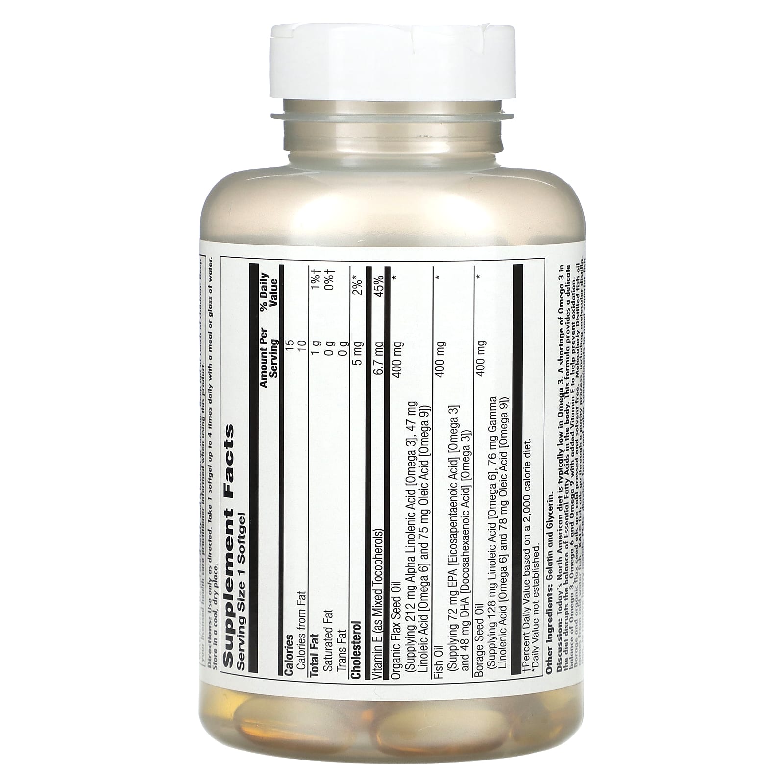 A dieta norte-americana de hoje é tipicamente pobre em Ômega 3. A falta de Ômega 3 na dieta perturba o equilíbrio dos Ácidos Graxos Essenciais no corpo. Esta fórmula fornece um equilíbrio delicado de Ômega 3, Ômega 6 e Ômega 9 com adição de Vitamina E para ajudar a prevenir a oxidação. Os óleos de borragem e de linhaça orgânicos são prensados a frio e não contêm solventes. O óleo de peixe destilado molecularmente vem de peixes de água fria. Os óleos de peixe KAL® passam por um processo de pureza, incluindo destilação molecular, para remover metais pesados, PCBs, dioxinas, furanos e outros contaminantes para atender aos padrões superiores de óleo de peixe.