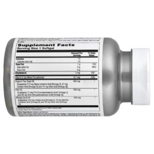 | Óleo de Semente de Linhaça Orgânico (Fornecendo 212 mg de Ácido Alfa-Linolênico [Ômega 3], 47 mg de Ácido Linoleico [Ômega 6] e 75 mg de Ácido oleico [Ômega 9]) |