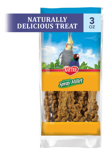 Kaytee Spray Millet é a guloseima favorita de todos os pássaros. O painço vem naturalmente em um caule e é bom para estimular o desmame e fazer com que os pássaros comam. Spray Millet é ótimo para filhotes, jovens e pássaros adultos. Deleite altamente palatável. Bom para incentivar o desmame e fazer com que os pássaros comam. Adiciona a variedade nutricional recomendada à dieta de um pássaro. Ideal para criar laços e brincar. Natural, sem cores ou sabores artificiais.
