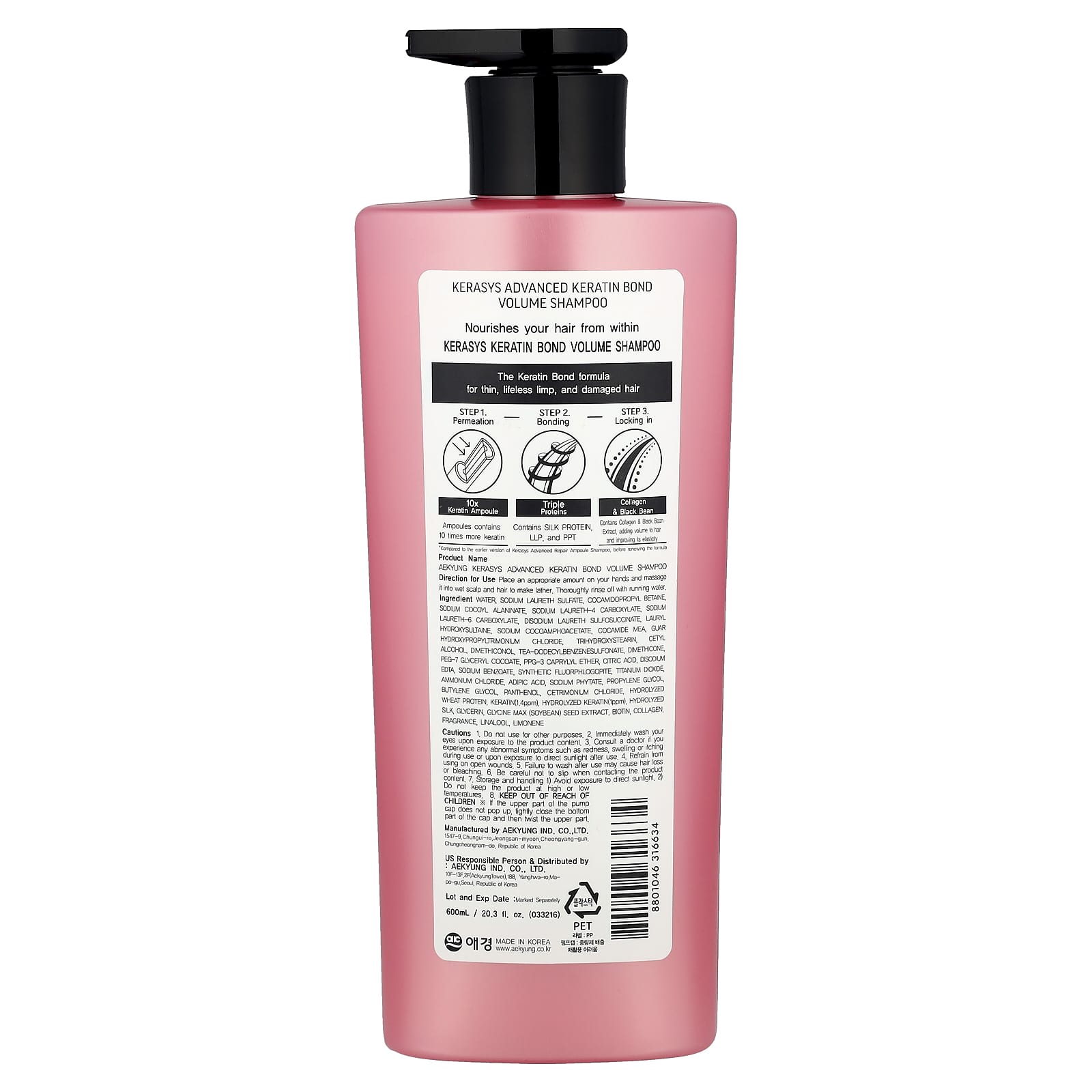 Kerasys Advanced Shampoo Keratin Bond Volume 600 ml (202 fl oz) – Kerasys Cuidados Pessoais Cabelos Shampoo Beleza Beleza por Ingrediente Cuidado para a pele com queratina.