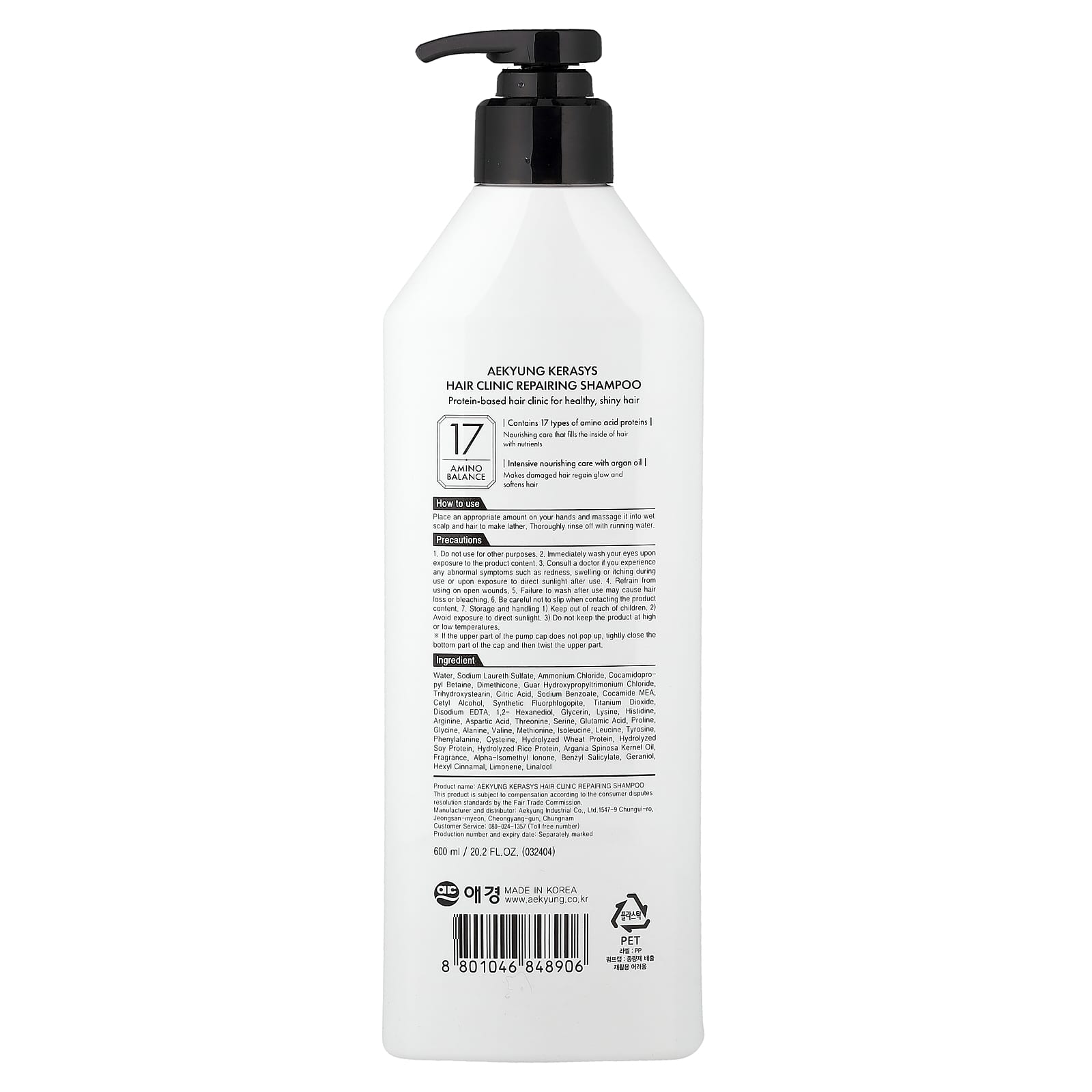 Kerasys Aekyung Clínica Capilar Shampoo Reparador 600 ml (202 fl oz) – Kerasys Banho e Cuidados Pessoais Cabelos Shampoo Cuidado com os cabelos K-Beauty.