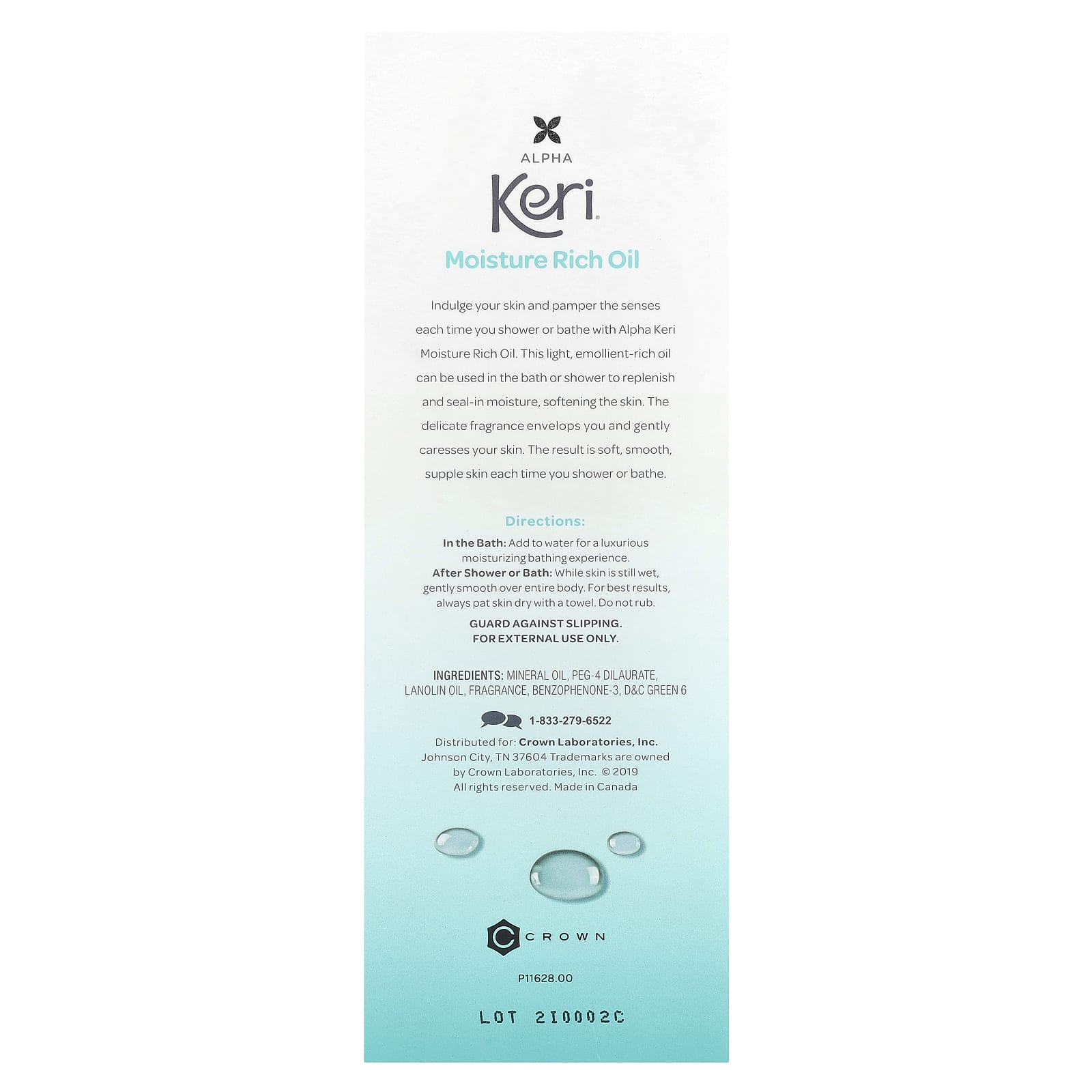 Mime a sua pele e mime os sentidos sempre que tomar banho ou tomar banho com o Óleo Rico em Hidratação Alpha Keri. Este óleo leve e rico em emolientes pode ser usado no banho ou no chuveiro para reabastecer e selar a hidratação, suavizando a pele. A fragrância delicada envolve você e acaricia suavemente sua pele. O resultado é uma pele macia, macia e flexível sempre que você tomar banho.