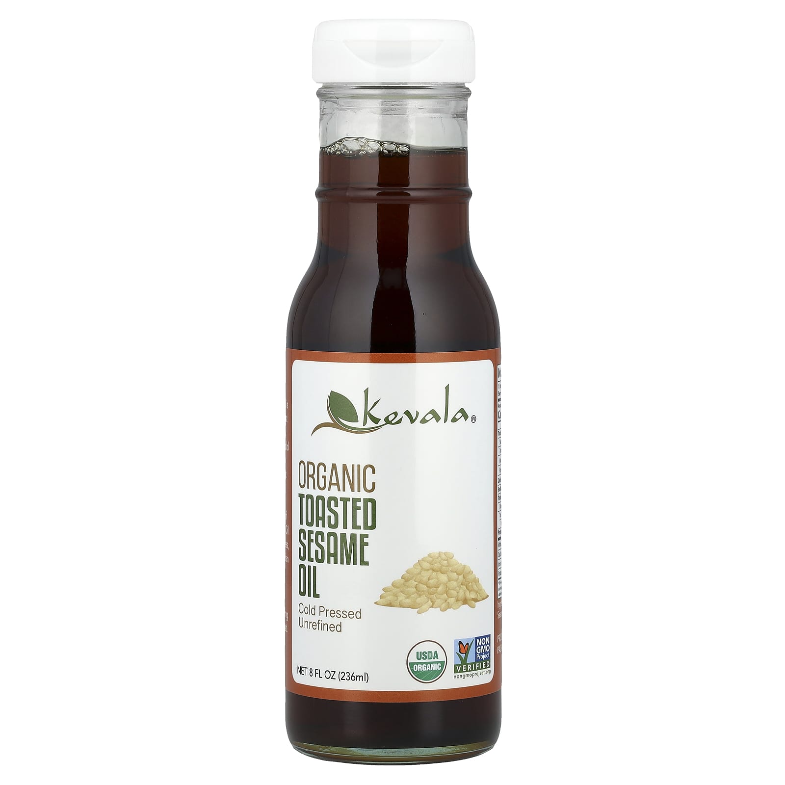 Kevala Óleo de Gergelim Tostado Orgânico 8 onças fluidas (236 mL) – Kevala Alimentos Óleos e vinagres Óleo de Gergelim.