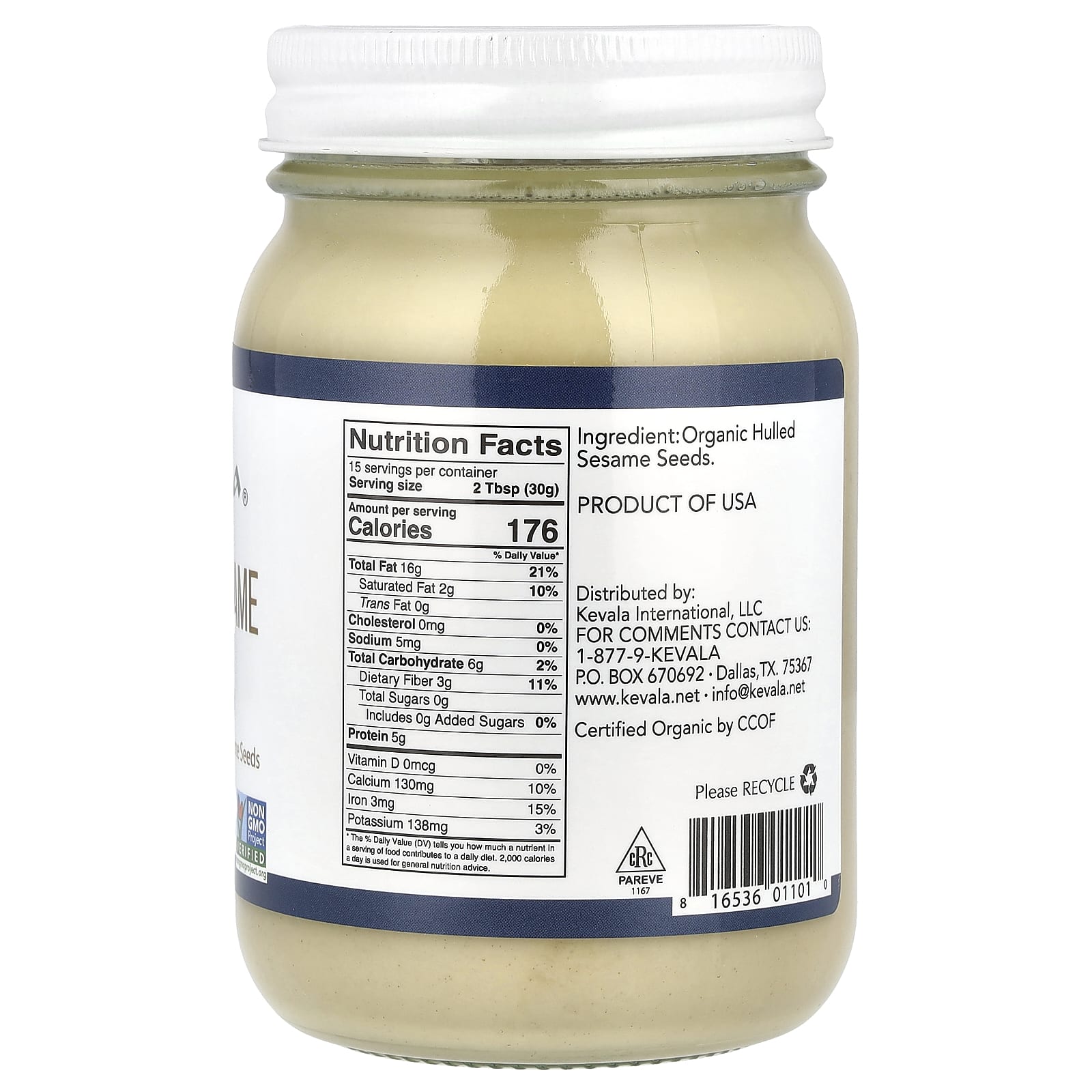 Kevala Tahini de Gergelim Orgânico 16 oz (454 g) – Kevala Alimentos Condimentos, molhos e pastas Manteigas e Pastas de Nozes Tahini.