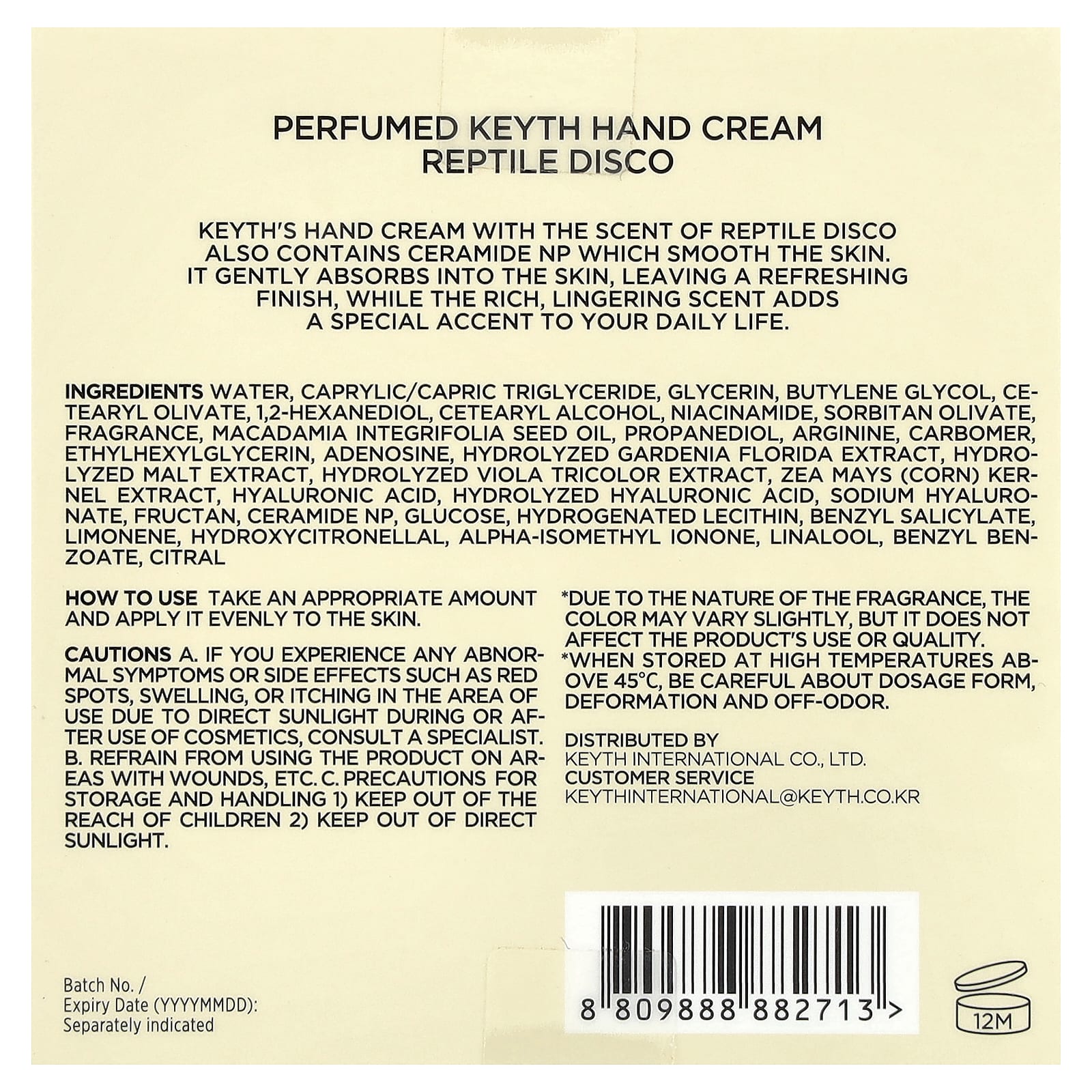 KEYTH Creme para as Mãos Perfumado Reptile Disco 70 ml (236 fl oz) – KEYTH Cuidados Pessoais Cuidados com o Corpo Creme para as Mãos Cuidado corporal K-Beauty.