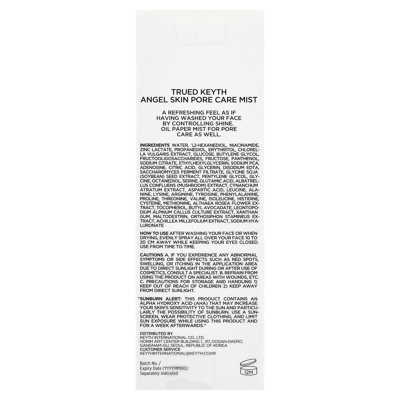 KEYTH Spray para Cuidados com os Poros da Pele da Trued Angel 50 ml (169 fl oz) – KEYTH Beleza Hidratantes Faciais e Cremes Bruma facial Bruma facial K-Beauty.