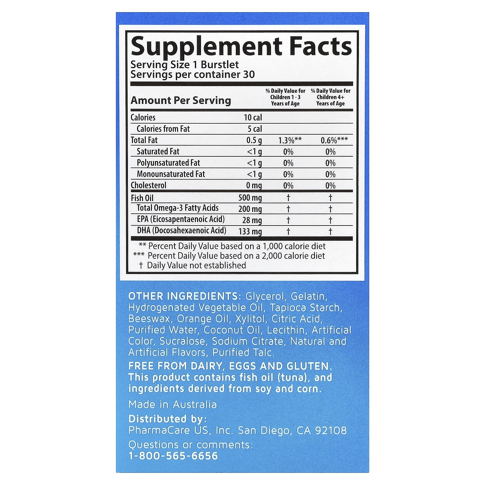 • Cada Burstlet Contém 500 mg de Óleo de Peixe Natural