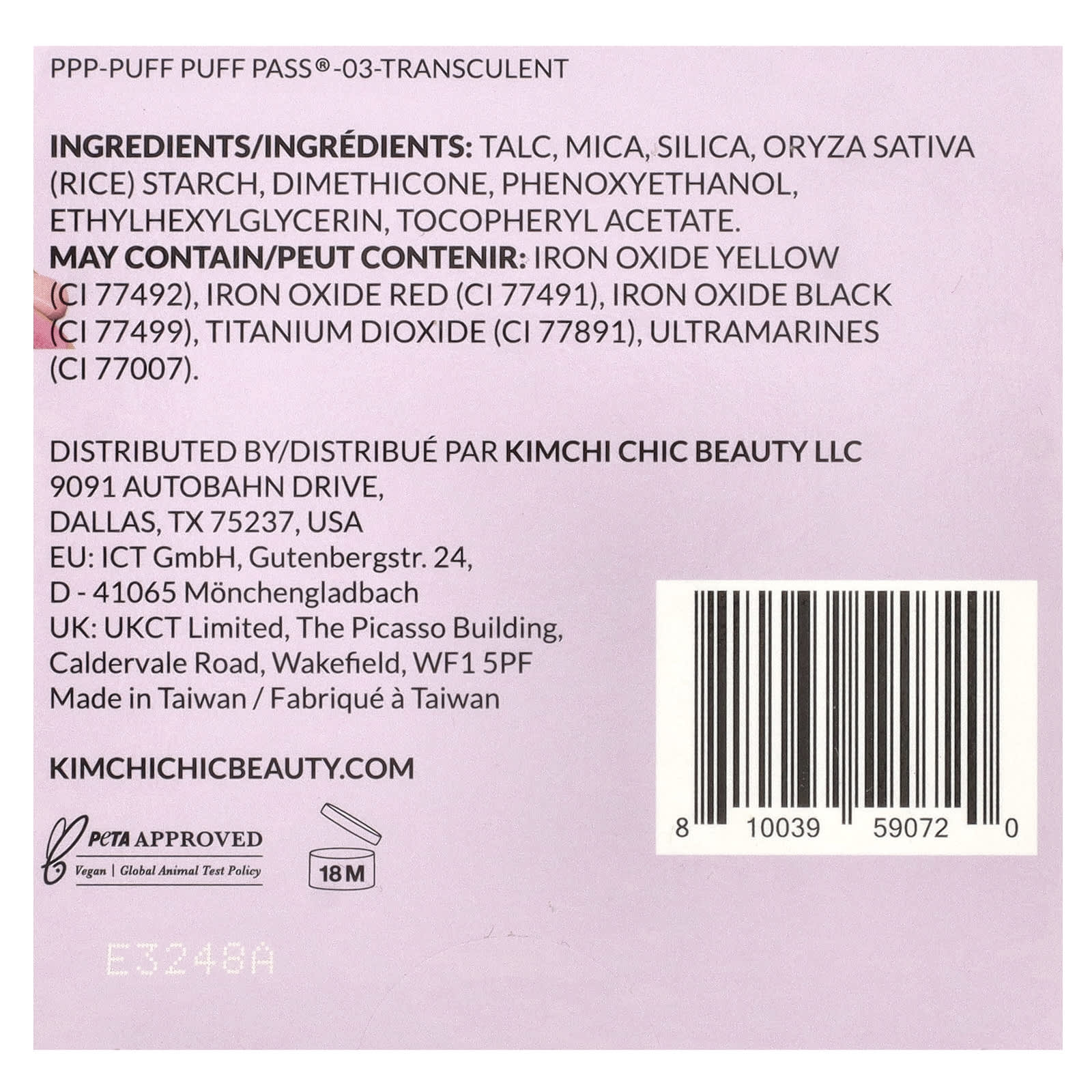 KimChi Chic Beauty Puff Puff Pass® Pó para Fixar e Assar PPP03 Translúcido 24 g (085 oz) – KimChi Chic Beauty Beleza Maquiagem Rosto Spray e Pó Fixador.