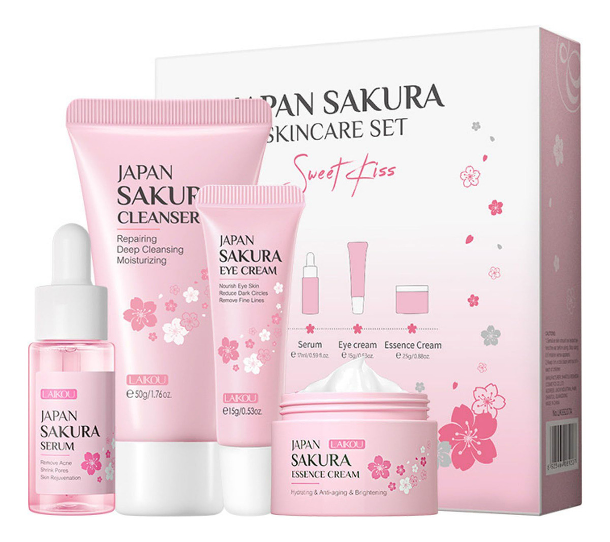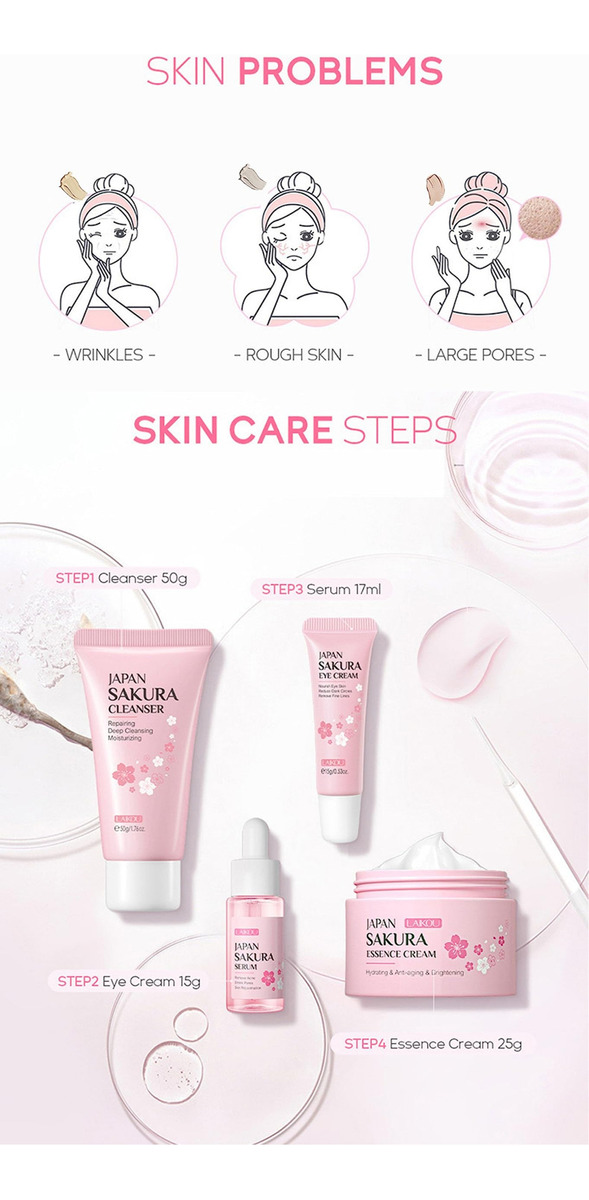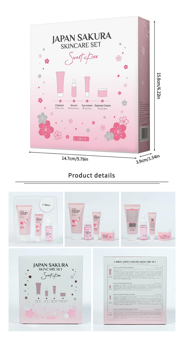 1. O conjunto de cuidados com a pele perfeito para adolescentes, meninas e mulheres que adoram se deliciar com conjuntos de beleza e spa. Nosso conjunto de cuidados com a pele é cuidadosamente elaborado com uma fórmula suave que é adequada até mesmo para pessoas com pele sensível. Repleto de ingredientes poderosos, como niacinamida, hialuronato de sódio e vitamina C, este conjunto deixará sua pele com uma aparência mais brilhante, uniforme e hidratada. 2. O creme foi desenvolvido para reter a umidade e iluminar o tom da pele, deixando-a radiante e hidratada. O limpador é especialmente formulado para limpeza, permitindo que você remova impurezas e sujeira da pele de forma eficaz. E, por fim, o sérum fornece hidratação e hidratação profundas, ajudando sua pele a parecer jovem e reduzindo a aparência de rugas, ao mesmo tempo em que a fortalece. 3. Este conjunto de cuidados com a pele é um presente perfeito para qualquer mulher que adora se mimar com os mais recentes produtos para a pele. Portanto, se você quer se presentear ou presentear um ente querido, este conjunto de cuidados com a pele definitivamente vale a pena. Prepare-se para desfrutar de tratamentos luxuosos de spa no conforto da sua casa com nosso conjunto de cuidados com a pele. Especificação Nome do produto: Conjunto de cuidados com a pele Cherry Blossom Embalagem: conjunto de 4 peças (limpador + essência + creme para os olhos + creme facial) Conteúdo líquido: 50 ml+17 ml+25 ml+15 ml Peso: 188 gramas Ingredientes matéria-prima: flor de cerejeira Eficácia: Hidratante – Hidratante e hidratante: Nosso conjunto de cuidados com a pele é infundido com extratos de sakura/flor de cerejeira que ajudam a hidratar e hidratar a pele seca, deixando você com um brilho mais saudável. – Cuidado e brilho: nosso conjunto de cuidados com a pele contém vitamina C, que ajuda a iluminar a pele. – Cuidado facial completo: com 4 peças – limpador, essência, creme para os olhos e sérum – você tem tudo o que precisa para alcançar uma rotina completa de cuidados faciais. – Ingredientes premium: nosso conjunto de cuidados com a pele é feito de ingredientes como niacinamida, hialuronato de sódio e vitamina C para garantir que sua pele receba o melhor tratamento da maneira mais natural possível. – Presente ideal para adolescentes: para ajudá-los a cuidar da pele e oferecer um resultado impressionante, eficaz e seguro, nosso cuidado com a pele O conjunto é o presente de aniversário perfeito que qualquer jovem adulto apreciará.