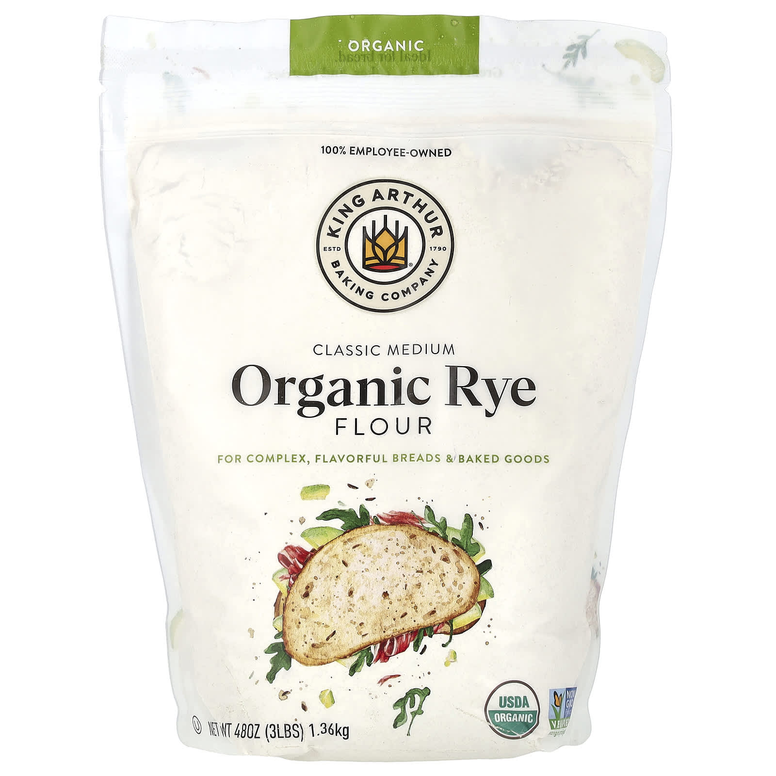 King Arthur Baking Company Farinha de Centeio Média Clássica Orgânica 136 kg (3 lbs) – King Arthur Flour Alimentos Fermentos, farinhas e misturas.