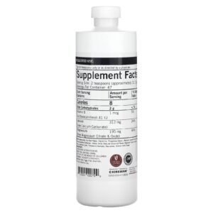 Contribui para a função cardíaca, a circulação, a função nervosa, a massa óssea, os dentes e o tônus muscular. Este é um suplemento líquido de cálcio e magnésio com vitamina