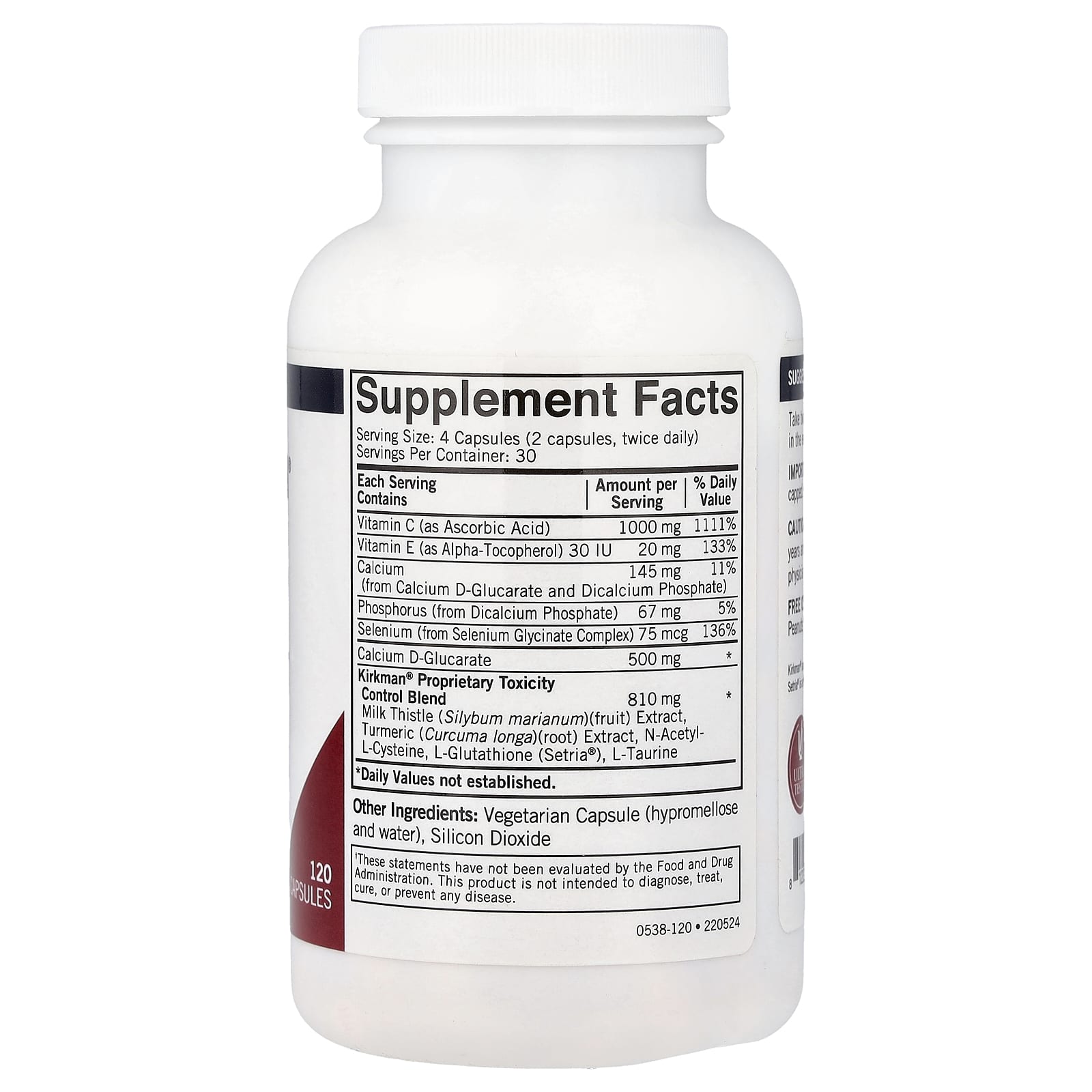 Kirkman Labs Controle da Toxicidade com Setria L-Glutathione 120 Cápsulas