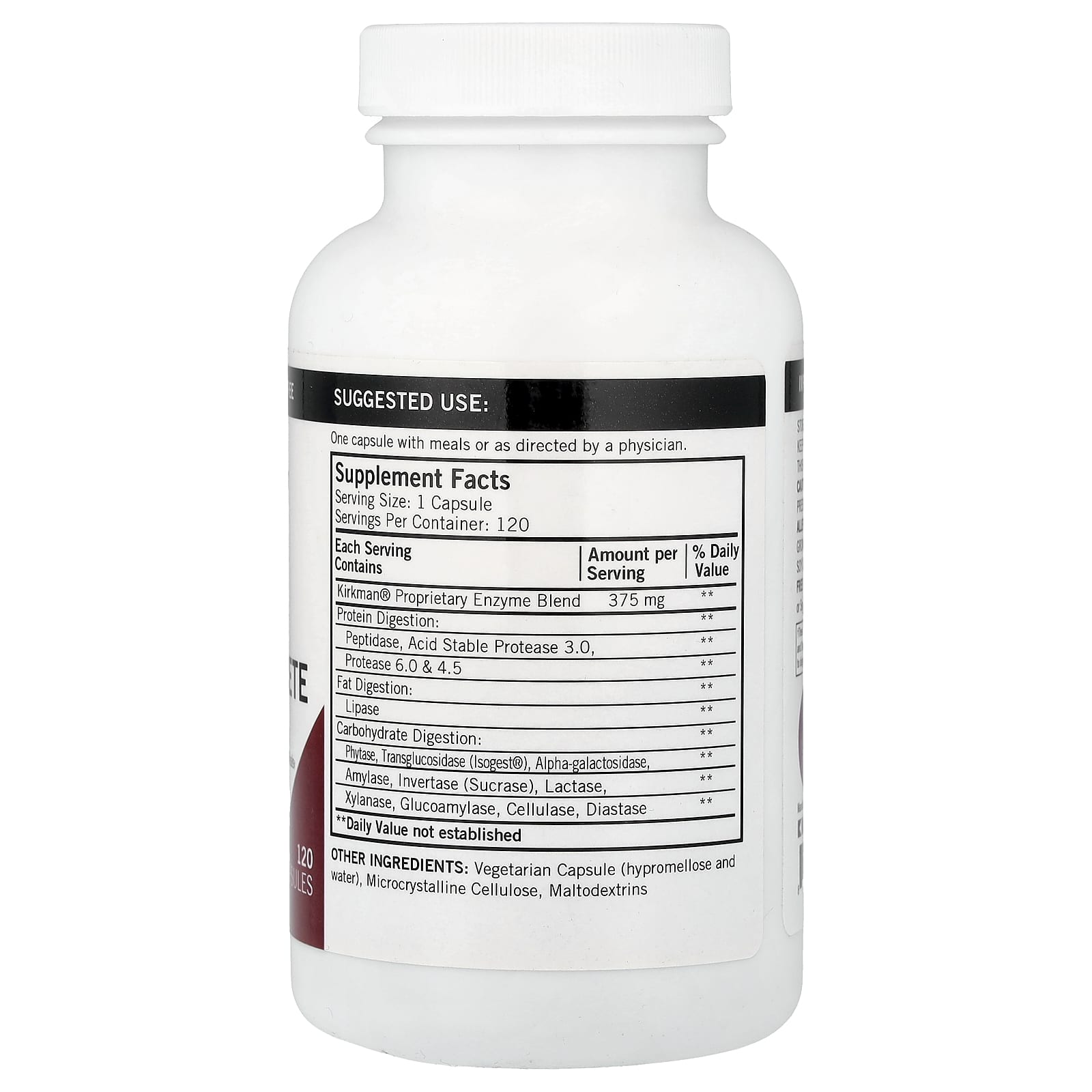 Kirkman Labs Enzima de Espectro Máximo Completo 120 Cápsulas – Kirkman Labs Suplementos Saúde Intestinal Enzimas Digestivas.