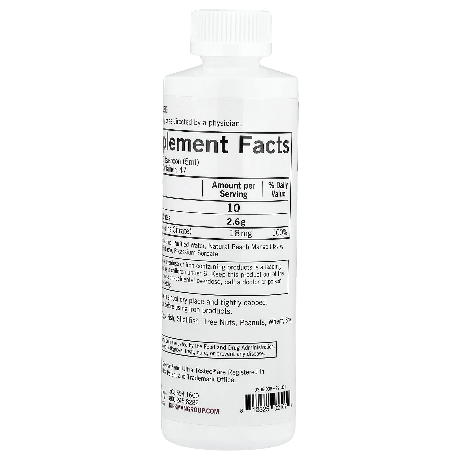 Kirkman Labs Ferro Líquido Manga e Pêssego Naturais 237 ml (8 fl oz)
