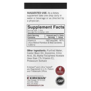 Kirkman Labs Vitamina A Micelizada em Gotas 30 ml (1 fl oz) – Kirkman Labs Suplementos Vitaminas Vitamina A.
