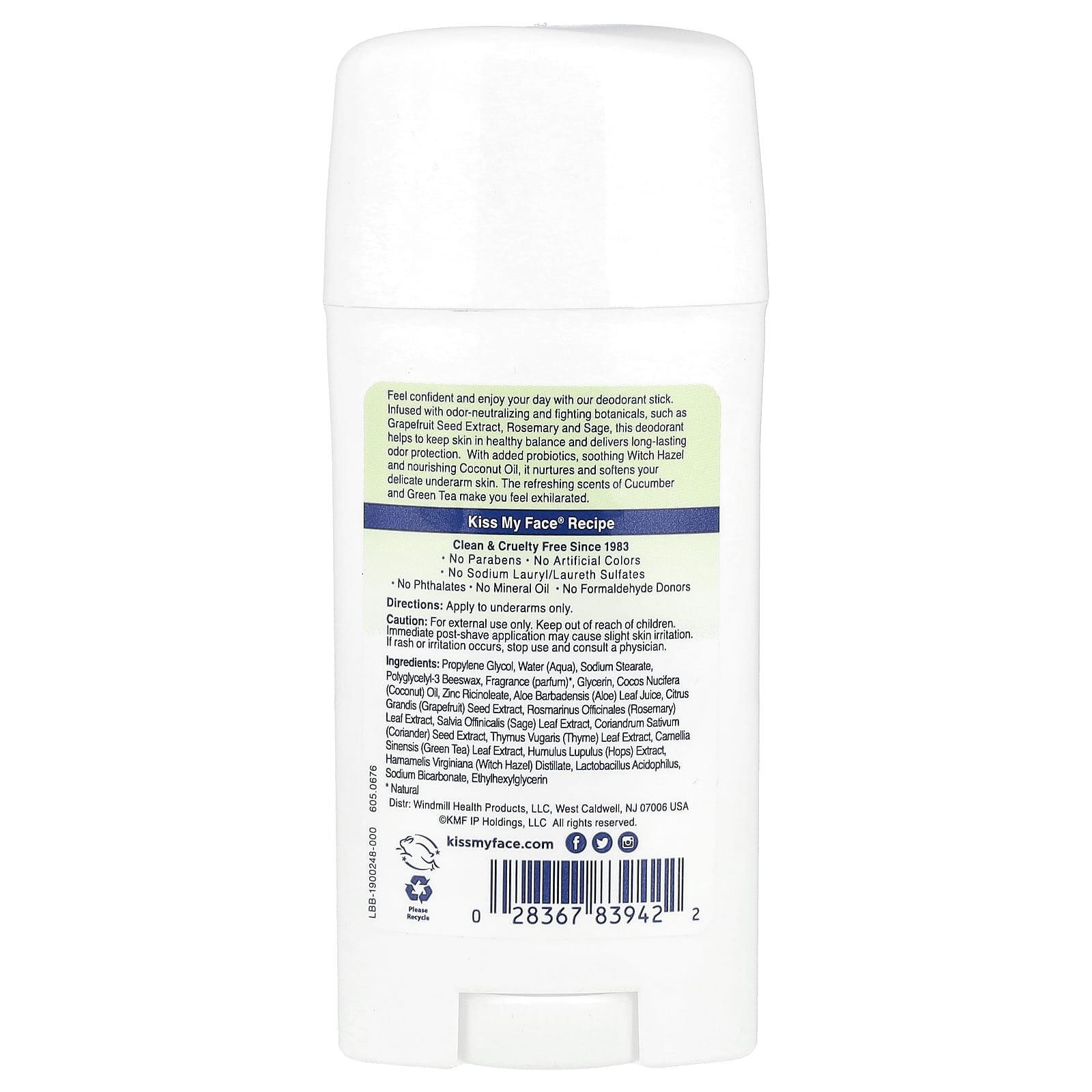 Kiss My Face Active Life® Desodorante em Bastão Pepino + Chá Verde 70 g (248 oz) – Kiss My Face Cuidados Pessoais Cuidados Íntimos Desodorante Beleza Beleza por Ingrediente Hamamélis.