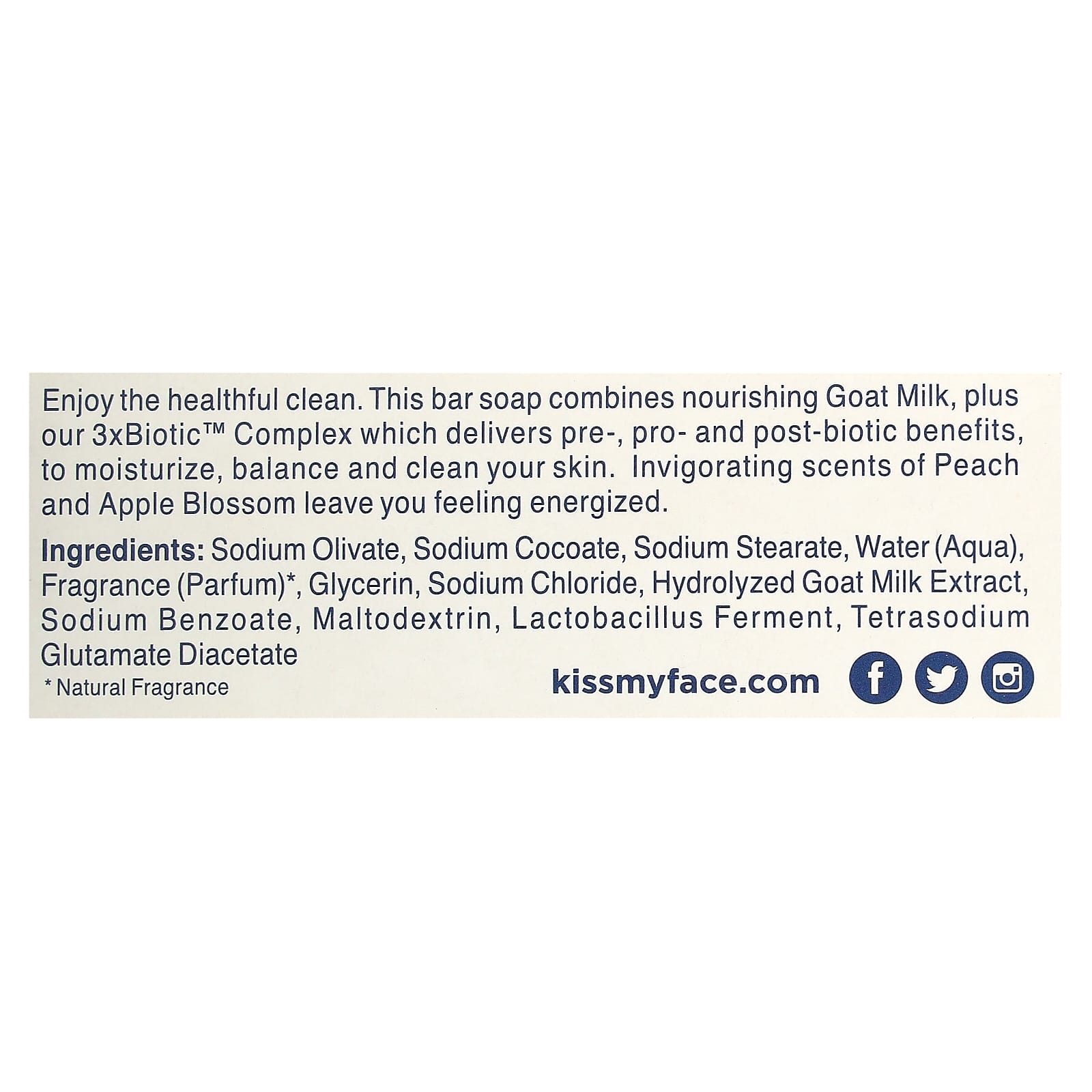 Desfrute de uma limpeza saudável. Este sabonete em barra combina leite de cabra nutritivo além do nosso Complexo 3xBiotic™, que fornece benefícios pré, pró e pós-bióticos para hidratar, equilibrar e limpar sua pele. Os aromas revigorantes de pêssego e flor de maçã deixam você se sentindo relaxado.