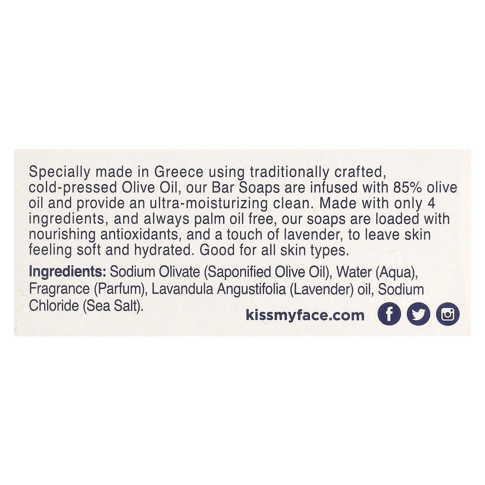 Kiss My Face Sabonete em Barra de Óleo de Oliva Azeitona e Lavanda 230 g (8 oz) – Kiss My Face Cuidados Pessoais Banho Sabonete em Barra.