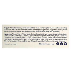 Kiss My Face Shampoo e Condicionador 2 em 1 Strengthen Para Cabelos Secos e Danificados Óleo de Monoi e Manteiga de Karité 1 Barra 113 g (4 oz) – Kiss My Face Cuidados Pessoais Cabelos Shampoo Shampoos em Barra Condicionador.